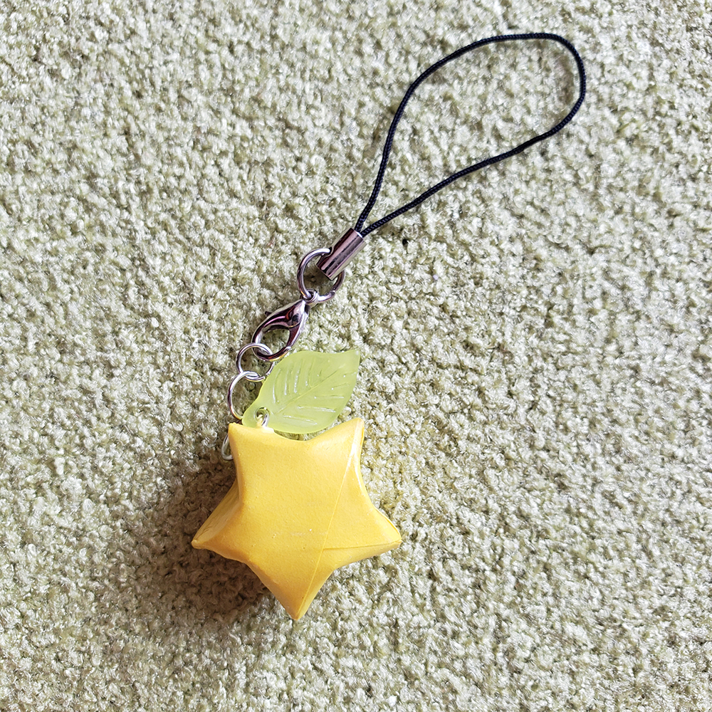 A handcrafted charm of the Paopu fruit from the Kingdom Hearts series. ✰1 x 1 inches ✰paper with modge podge coating ✰Black chain strap