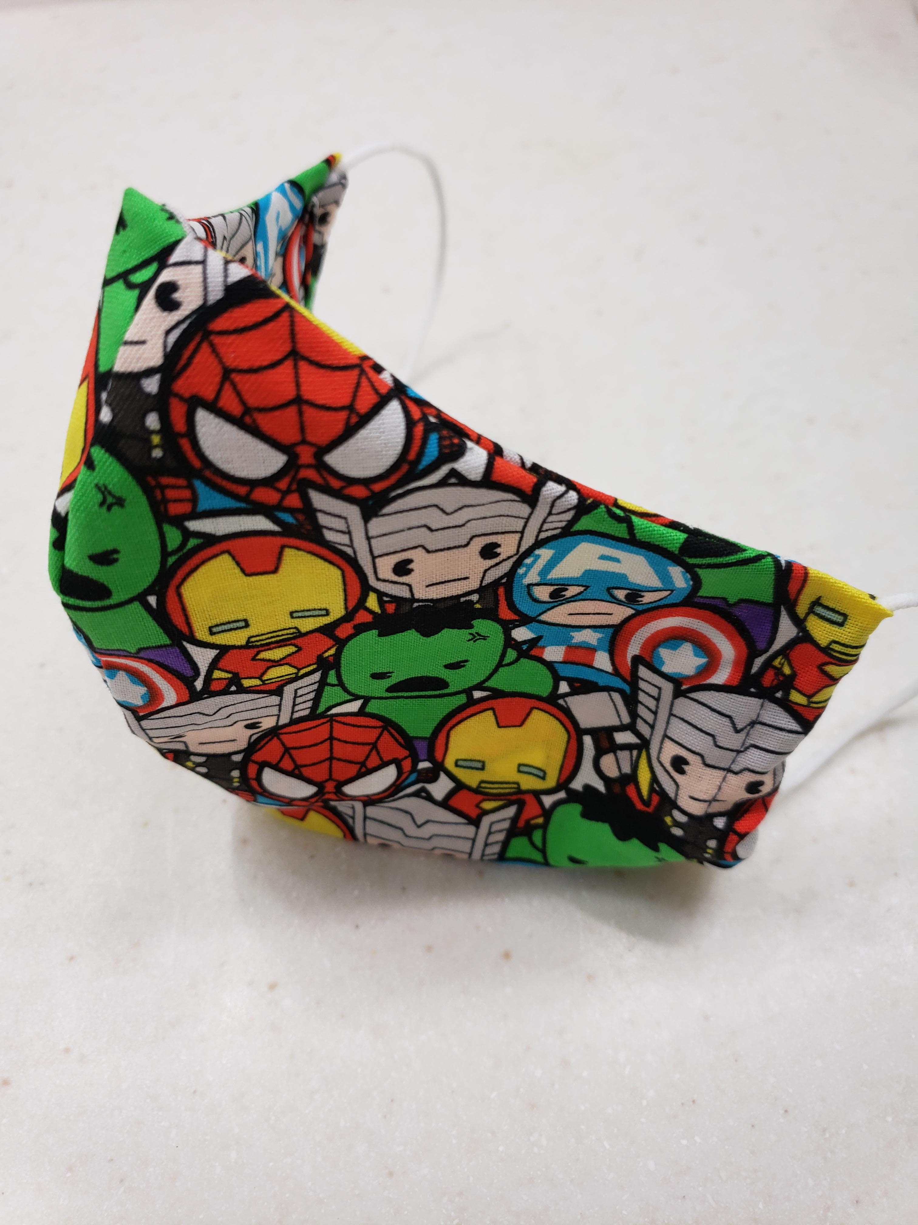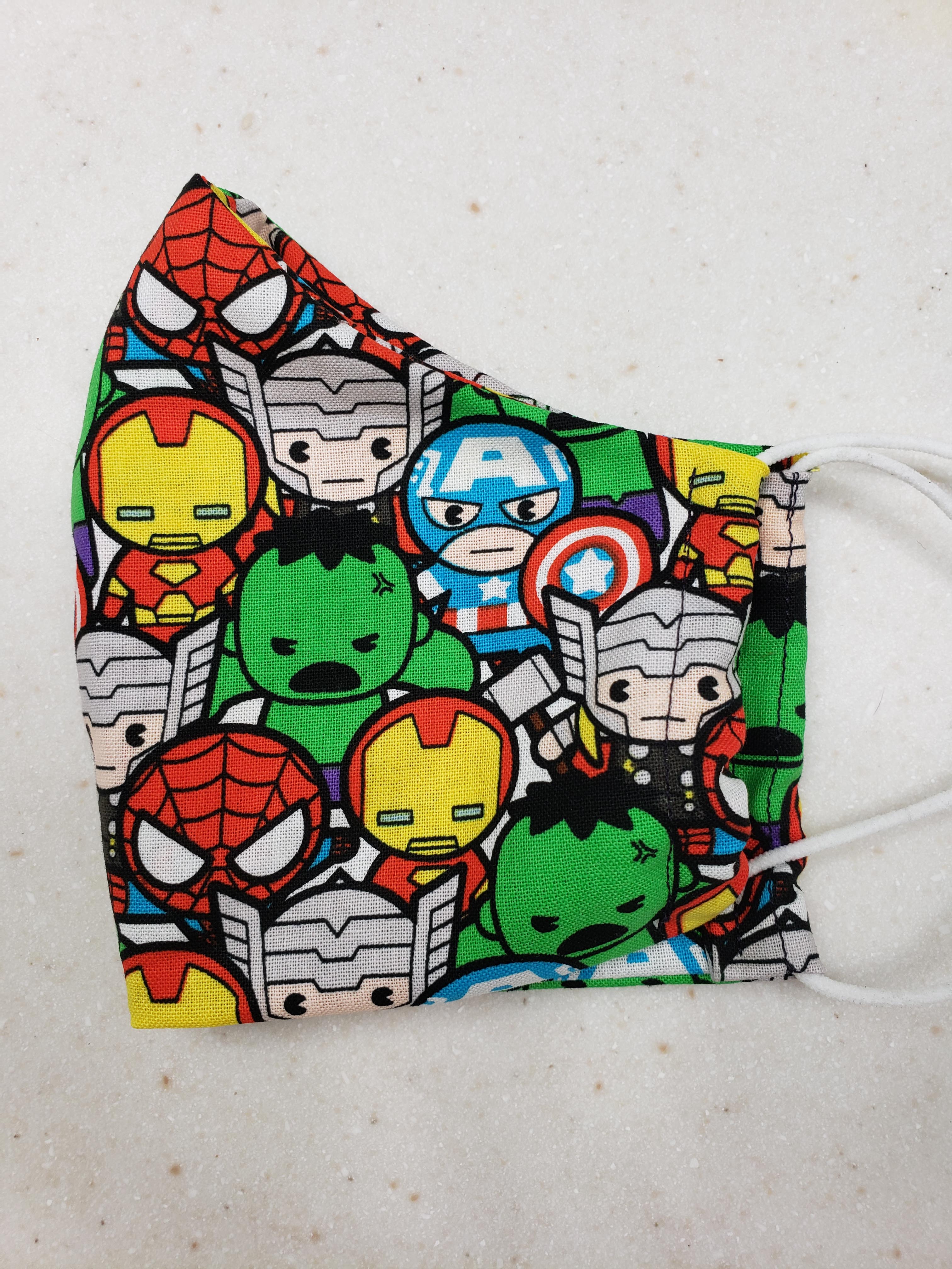 Handmade Facemasks crafted from fabric containing 100% cotton. This face mask features a Marvel Chibi Character Design that is Reversible.