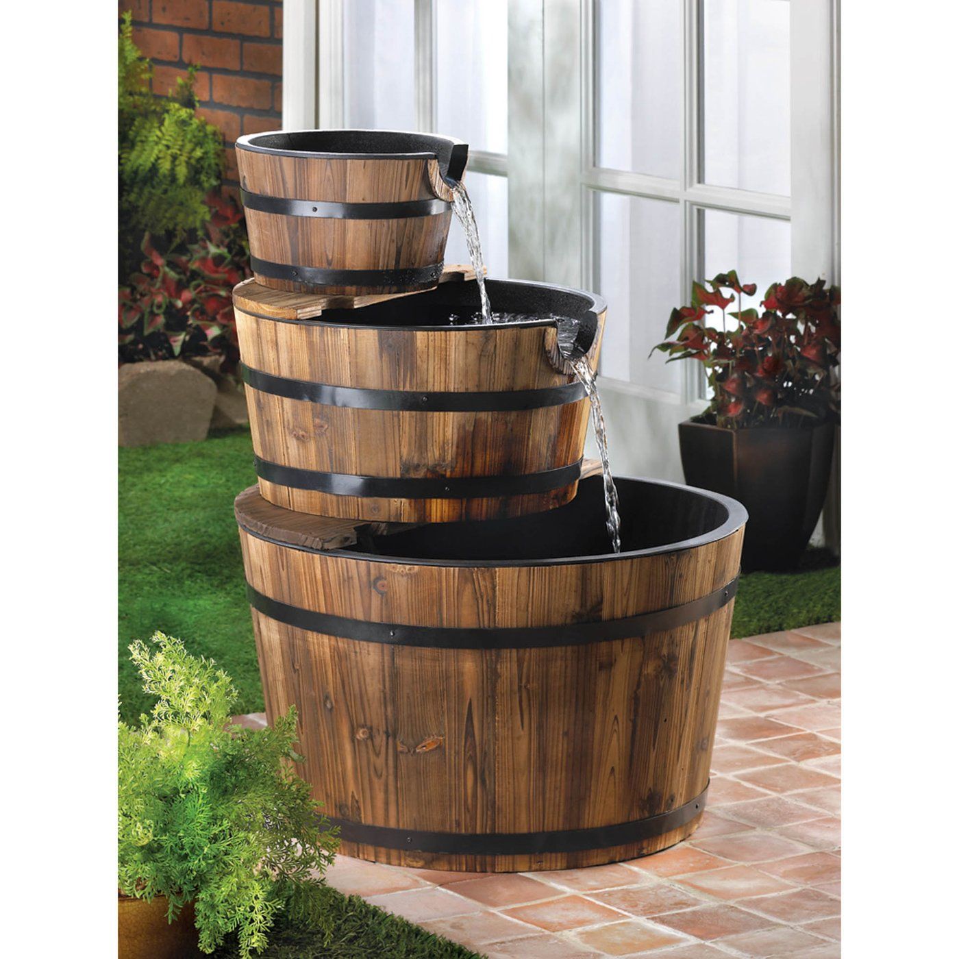 Sparkling waterfalls cascade from spout to spout down the faces of three stacked bushel baskets. This generously sized fountain with genuine wood trim adds bountiful rustic flair to your outdoor surroundings! Weight 27.00 lb s. 23.50" x 23.50" x 30.50". Fir Wood. UPC Number: 849179010621.