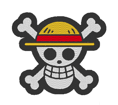 This custom anime embroidery design and pattern features the Straw Hat pirates jolly roger from the anime series One Piece.