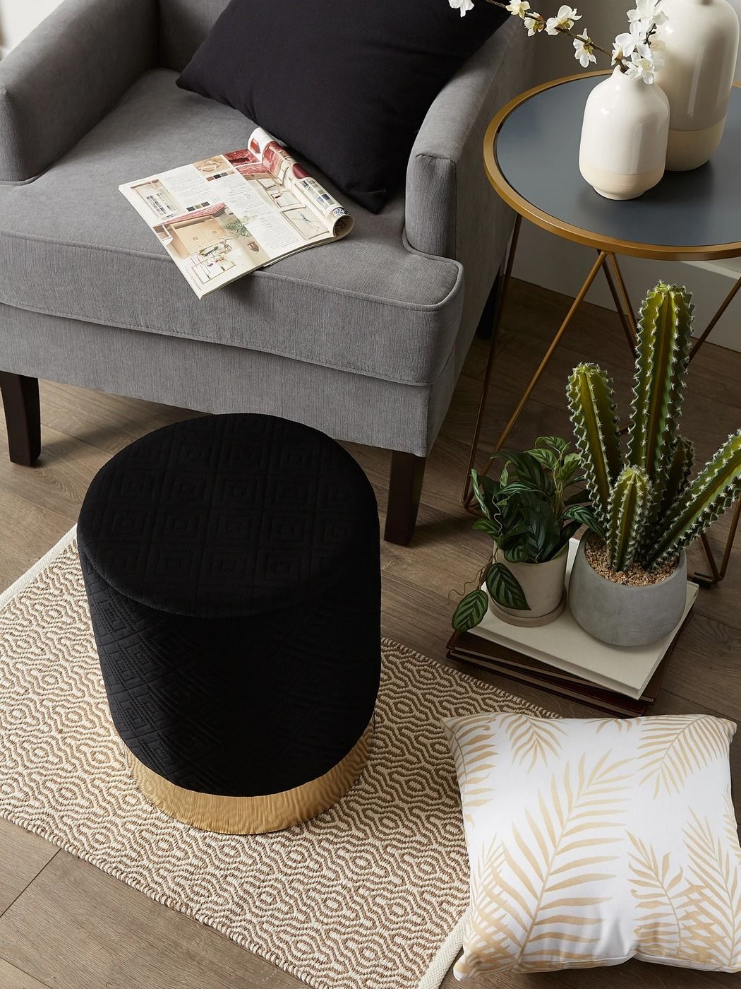 Black and Gold Velvet Stool Chair - FREE SHIPPING-1
