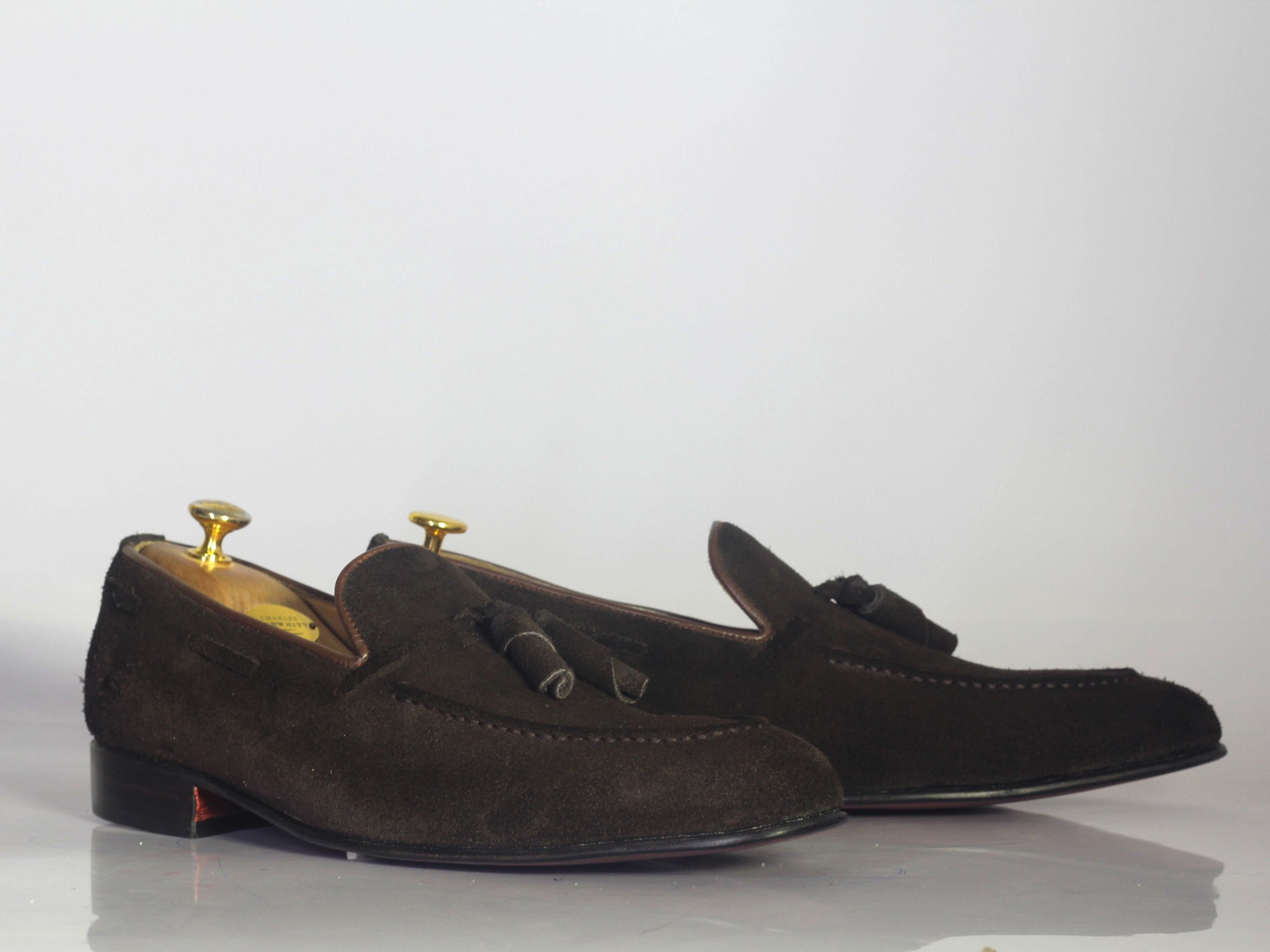 Handmade Genuine Suede Loafer Shoes Brown Color Slip on Tassels Moccasin Shoes For Men's