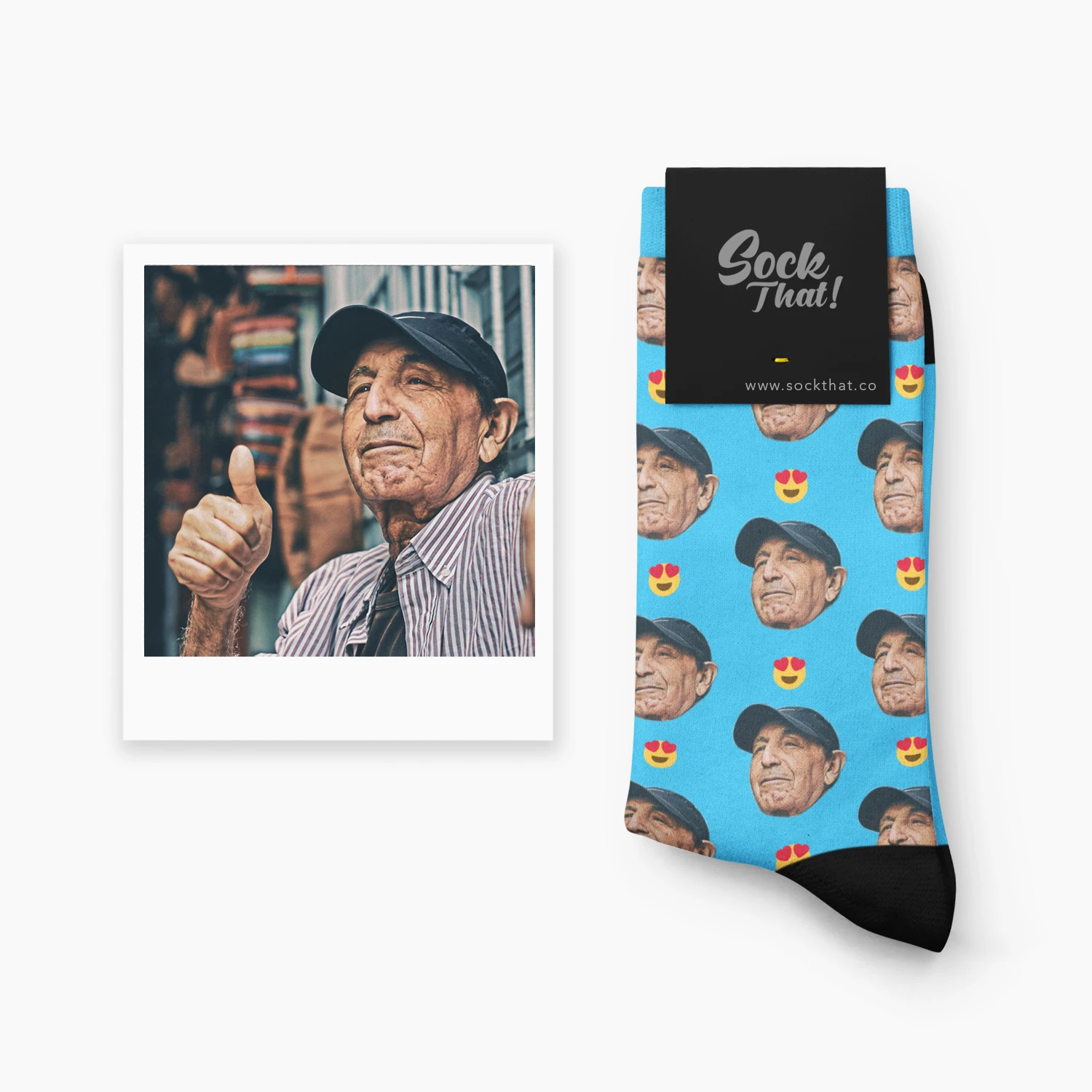 These face socks are all about your beaming faces and cheeky grins. Send us an awkward picture of your friend sporting an unfashionable haircut from their youth and we'll stick it on a sock. Deliver us a photograph of your face: the other half will appreciate the gift of your golden good looks stitched into the fabric of a fashionable sock. Socks with a face on are the perfect Christmas or birthday present, or our preferred method of gifting someone socks with faces on: slid into a co-worker's desk on an ordinary Tuesday morning.