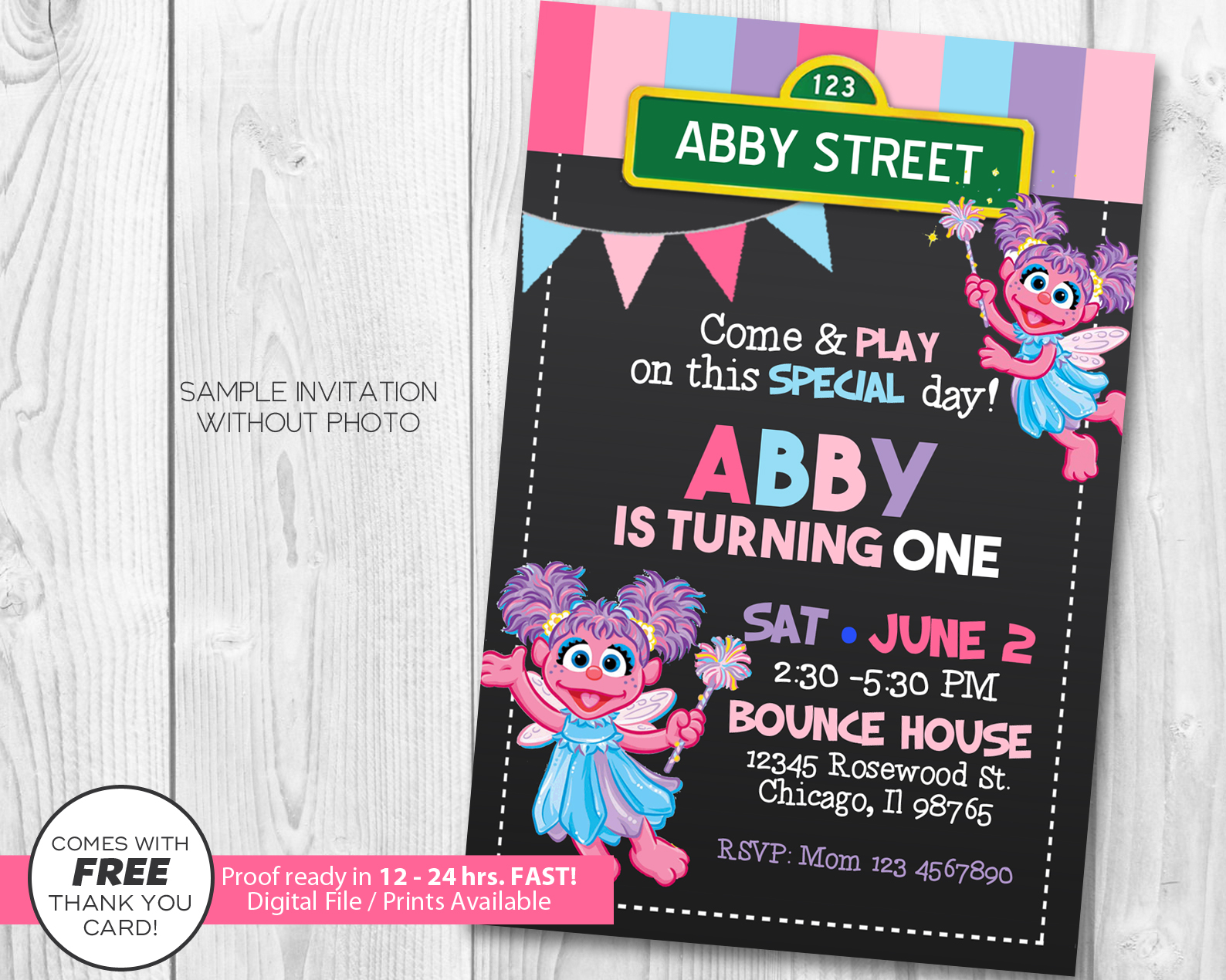Abby Cadabby Invitation, Sesame Street Birthday Party, Printable Abby Cadabby Invites, Digital or Prints with Envelopes, FREE Thank You Card