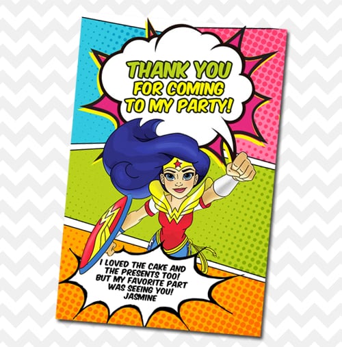 DC Superhero Girls Invitation, Super Hero Girl Invitation, Instant Download, Free Thank You Card, Digital or Prints with Envelopes