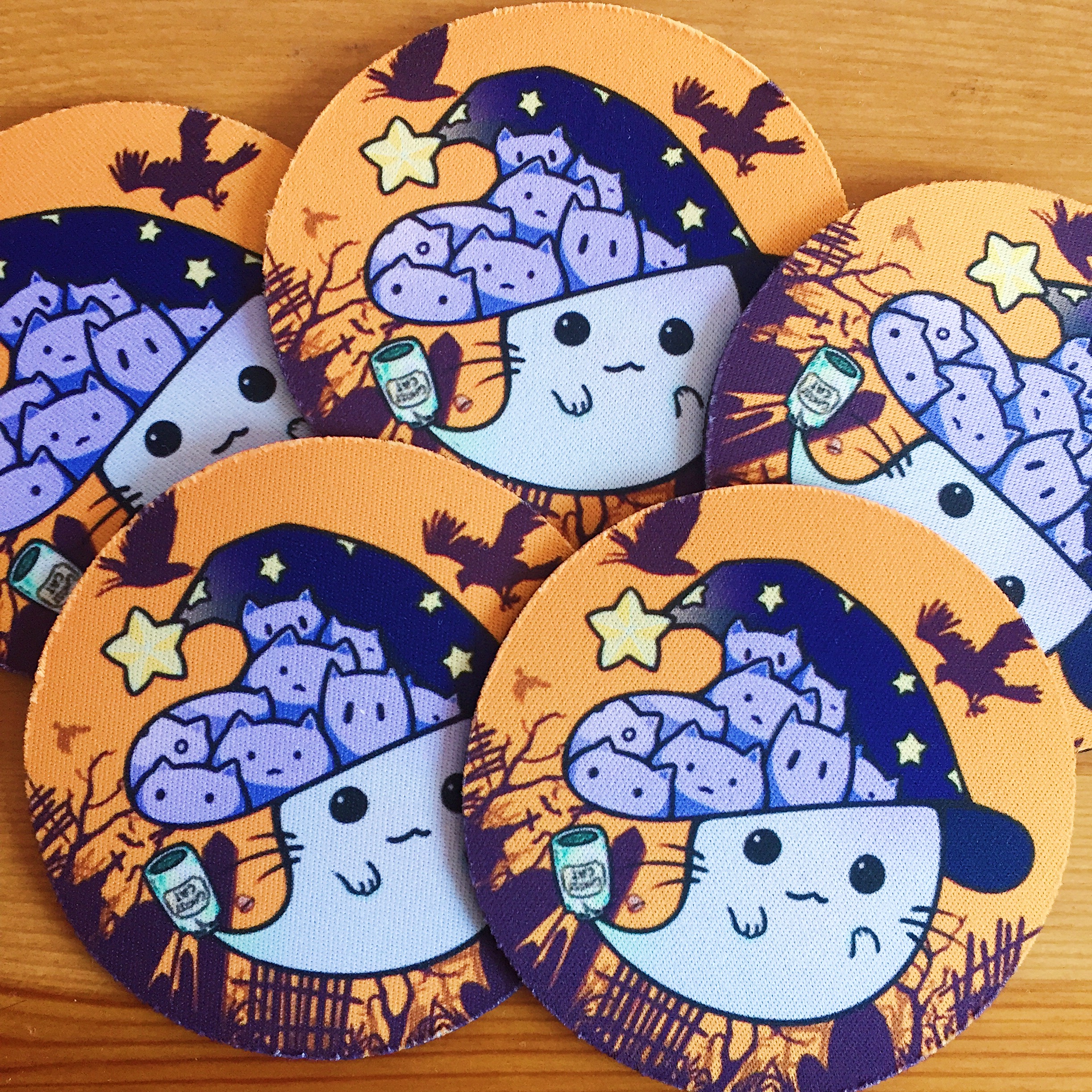 Ghost Magician Cat in a Bottle Soft Rubber Coaster-1