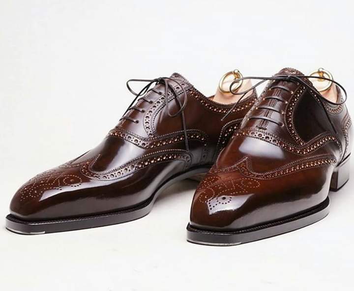Brogue Oxfords Shoes Mens, Handmade Brown Leather Lace up-1