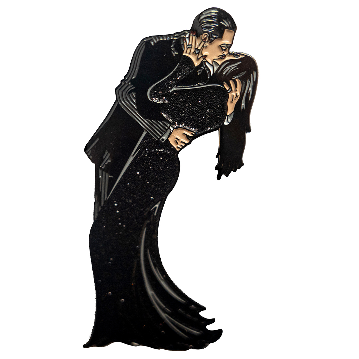 "A sweet love story that is older than the sea..." Watch as Gomez & Morticia's love sparkles under the moonlight with this new 3", glitter pin. View the pin commercial on youtube: https://www.youtube.com/watch?v=lci6lY_PFmE
