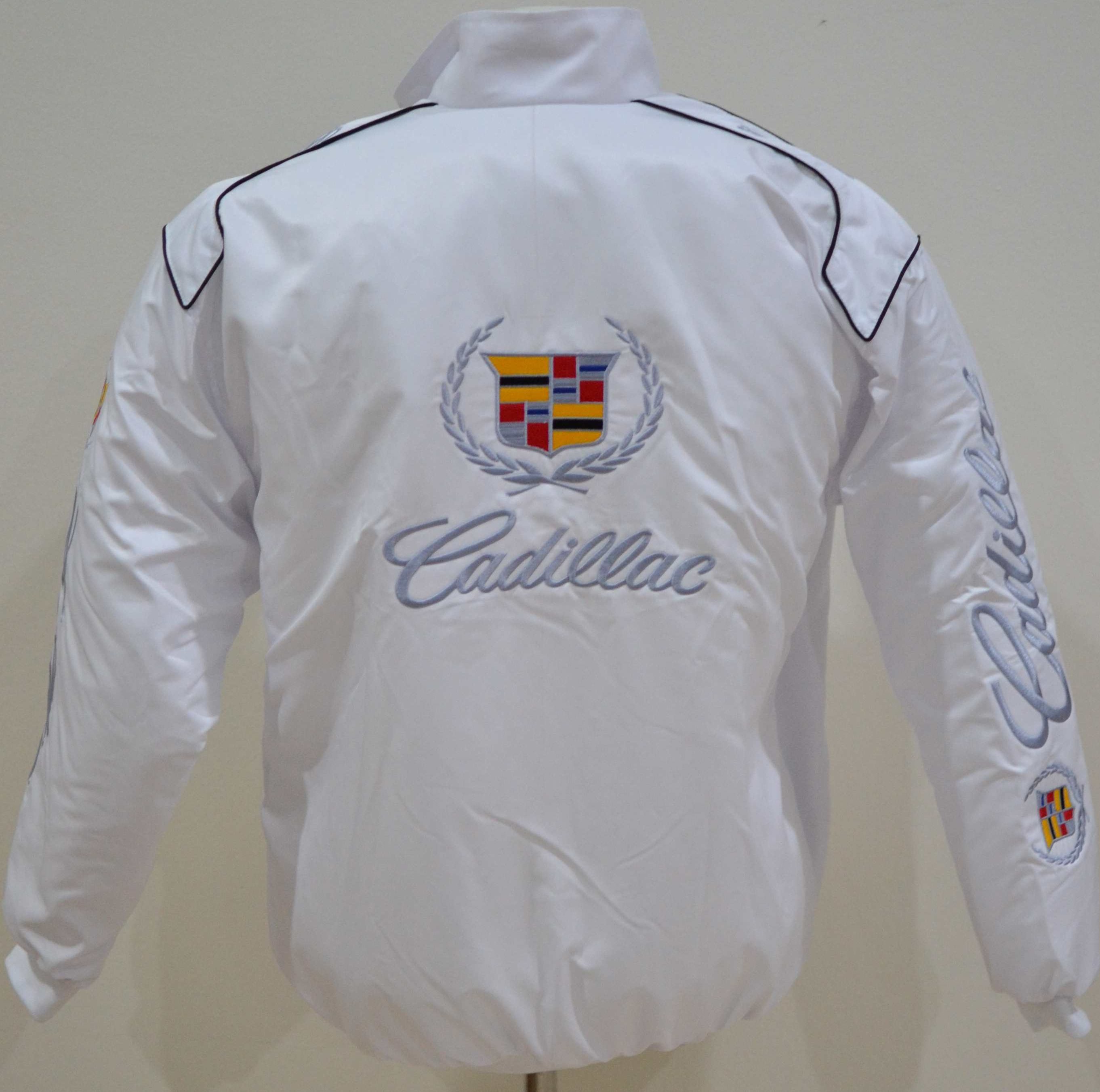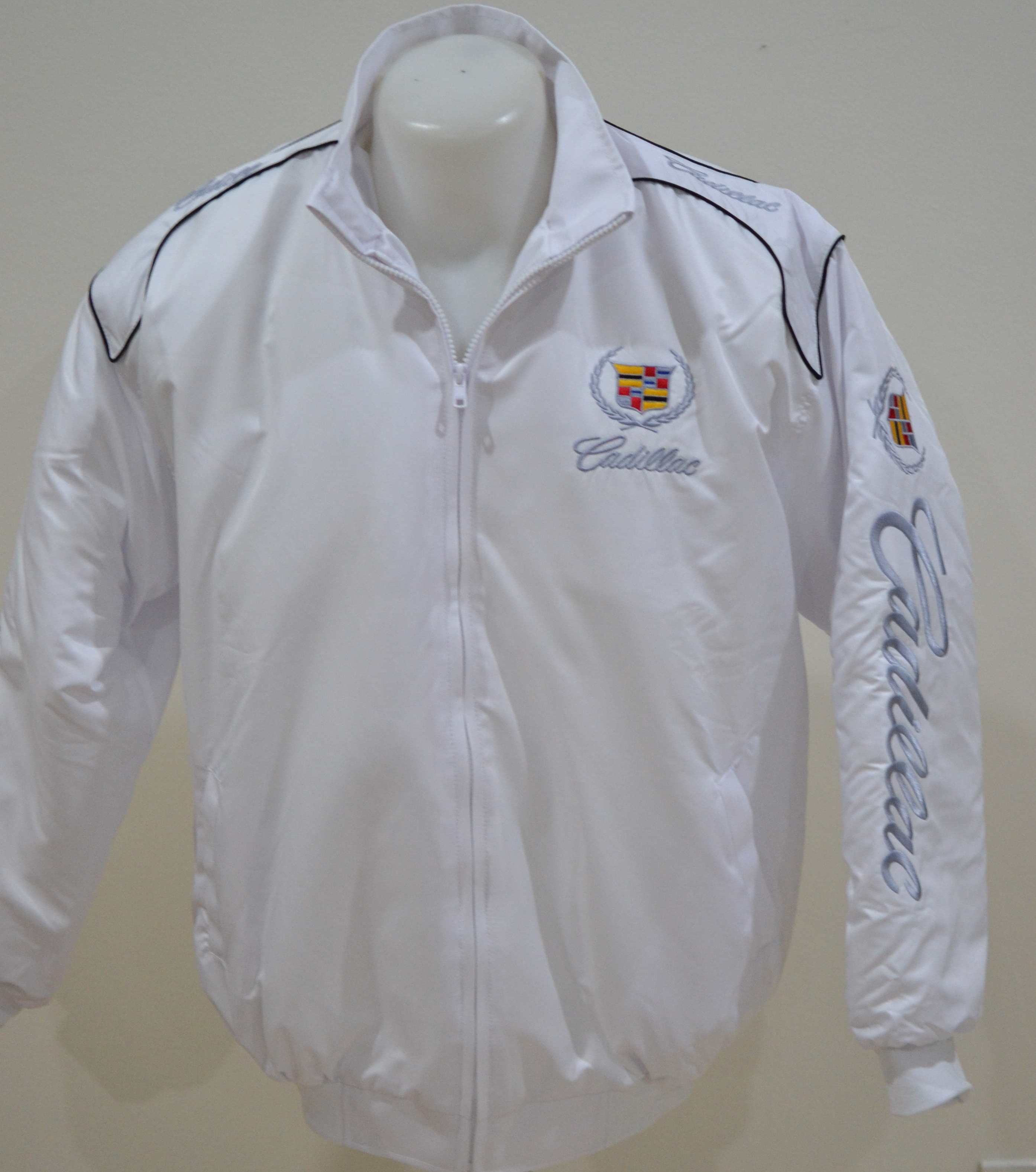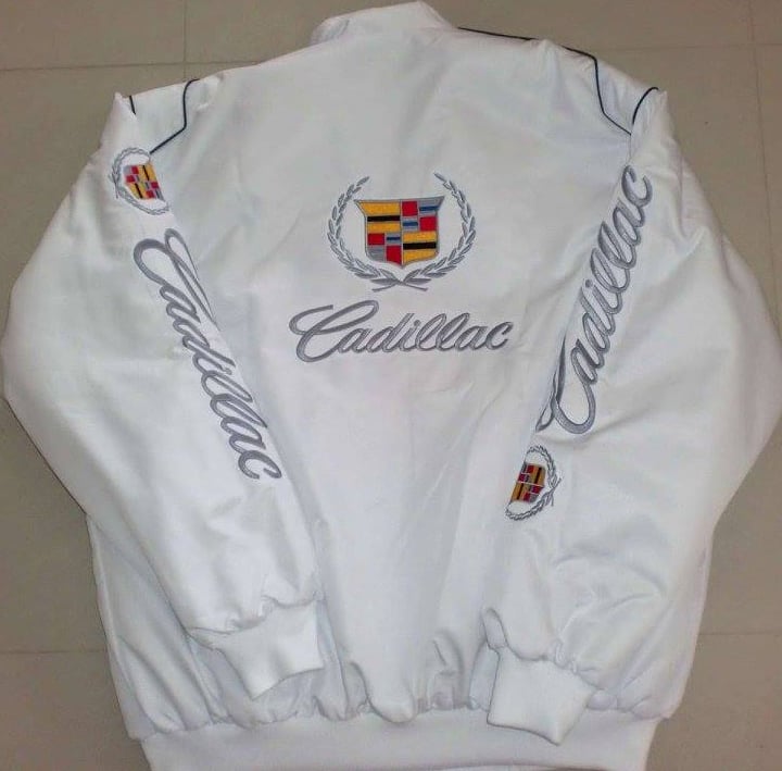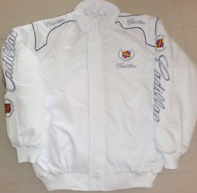 Cadillac - Jacket // white lined inside and quilted satin, wind repellent two hand pockets, one inside pocket cotton with viscose high quality embroidered applications Please take note of our Size-Chart !!! 3 lining variants: summer-jacket without lining spring-autumn-lining (standard-lining) strong winter-lining + $ 15.00 Company logo, club logo possible !!! Name embroider $ 5.00 Please indicate size and special-request when ordering. Your jacket will be made, it will take about 2 weeks depending on the order situation. Shippingservice: DHL with tracking-number __________________________________ innen gefüttert und Satin abgesteppt, windabweisend zwei Einschubtaschen, eine Innentasche Baumwolle mit Viskoseanteil erstklassig bestickt  Bitte beachten Sie unsere Größentabelle !!! 3 Futter-Varianten: Sommer-Jacke ohne Futter Frühjahr-Herbst-Futter (Standard-Futter) starkes Winter-Futter + 15,- $ Firmen-Logo, Club-Logo möglich !!! Name aufsticken 5,- $ Bitte geben Sie Größe und Sonderwünsche bei der Bestellung an. Ihre Jacke wird angefertigt, Dauer ca. 2 Wochen je nach Auftragslage. Versandservice: DHL mit Sendungsnummer