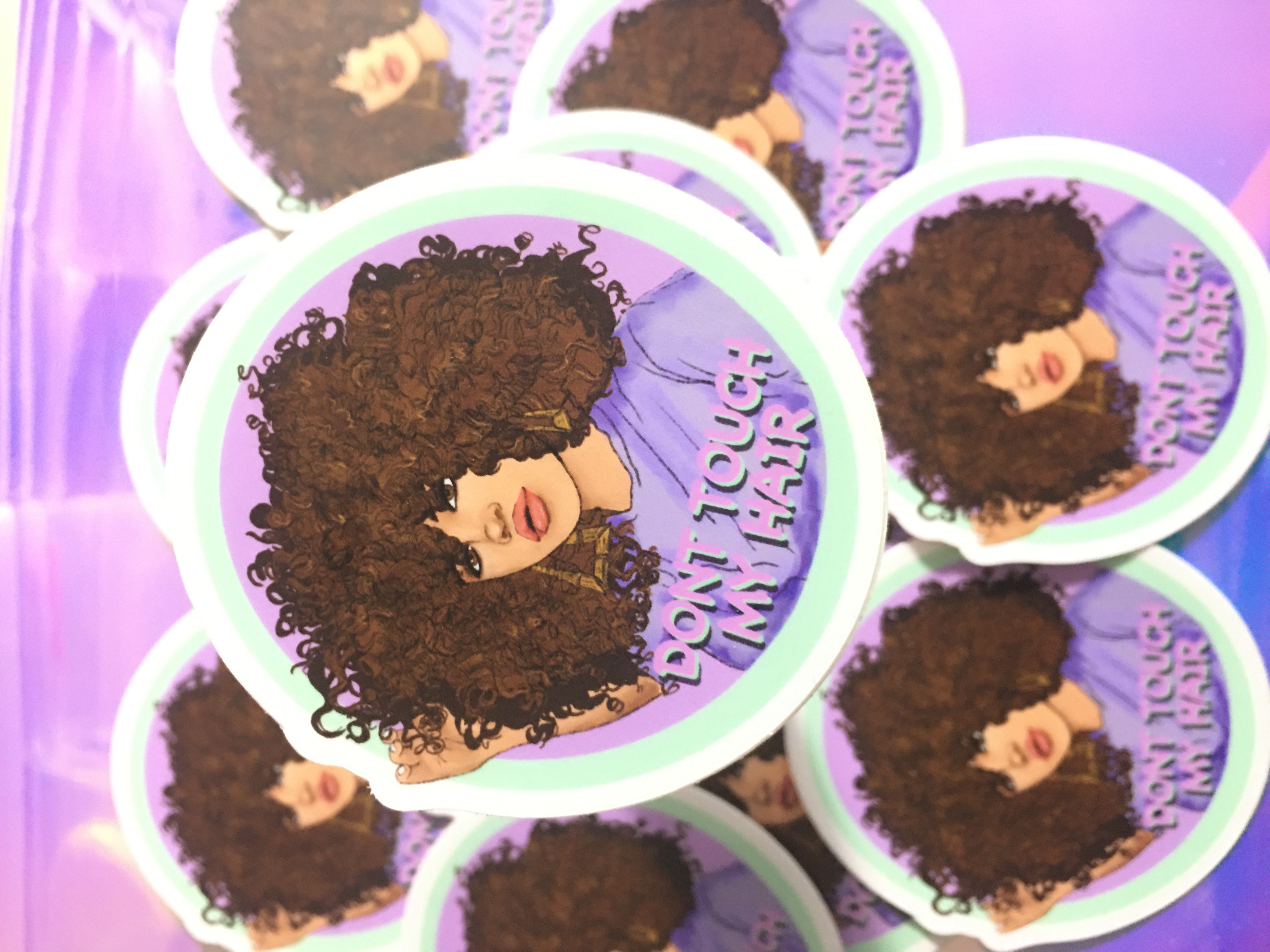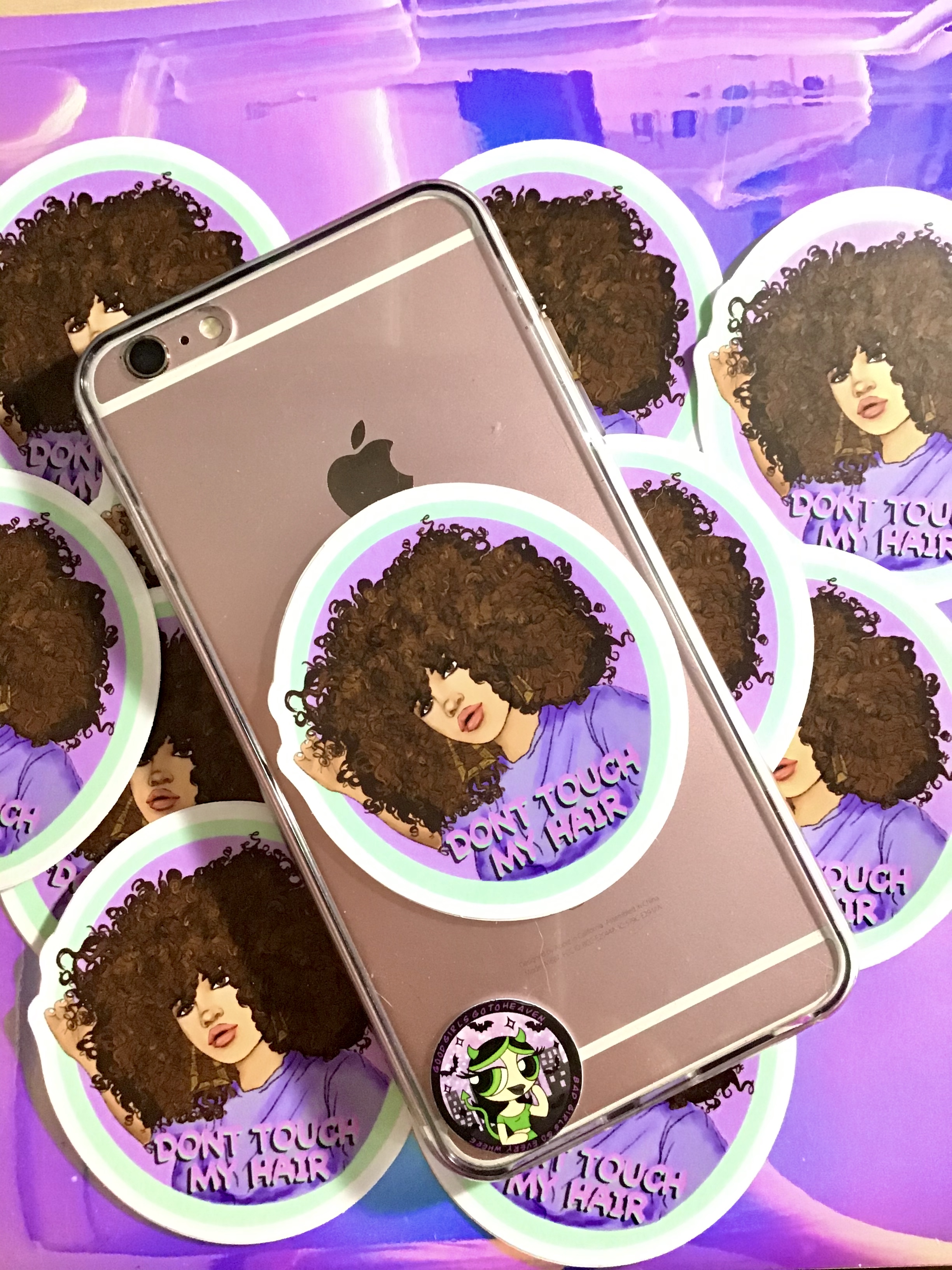 Don’t touch my hair we all have those days where we do our hair so cute and people always touch it all day and you’re like can you not touch my hair these are cute static for those mixed girls with curly hair you know how we fail to go on your phone Car notebook computer iPad anywhere you would like it this one’s kind of big one it’s 2 inches wide I love it I also have one that’s 1 inch