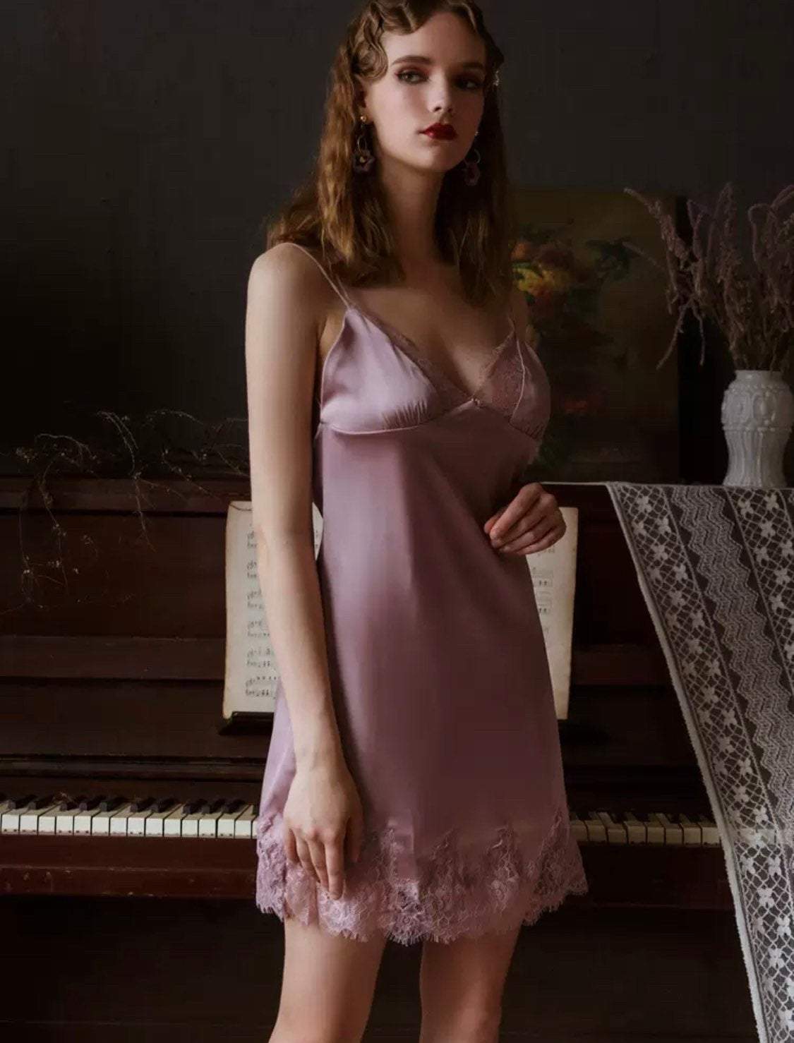 In Your Dreams Vintage Satin Lace Nightgown, Exquisite Lingerie Dress-2