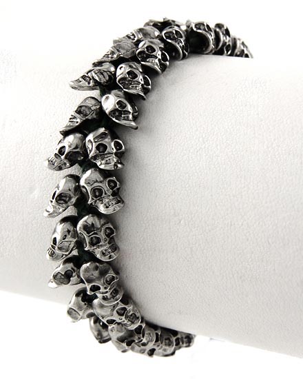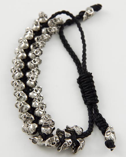 Rhodiumized / Black Cord / Lead&nickel Compliant / Metal / Halloween / Adjustable Skull Bracelet • Size Free : Adjustable • Width : 5/8"