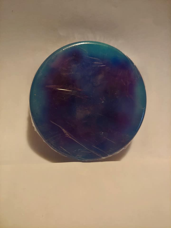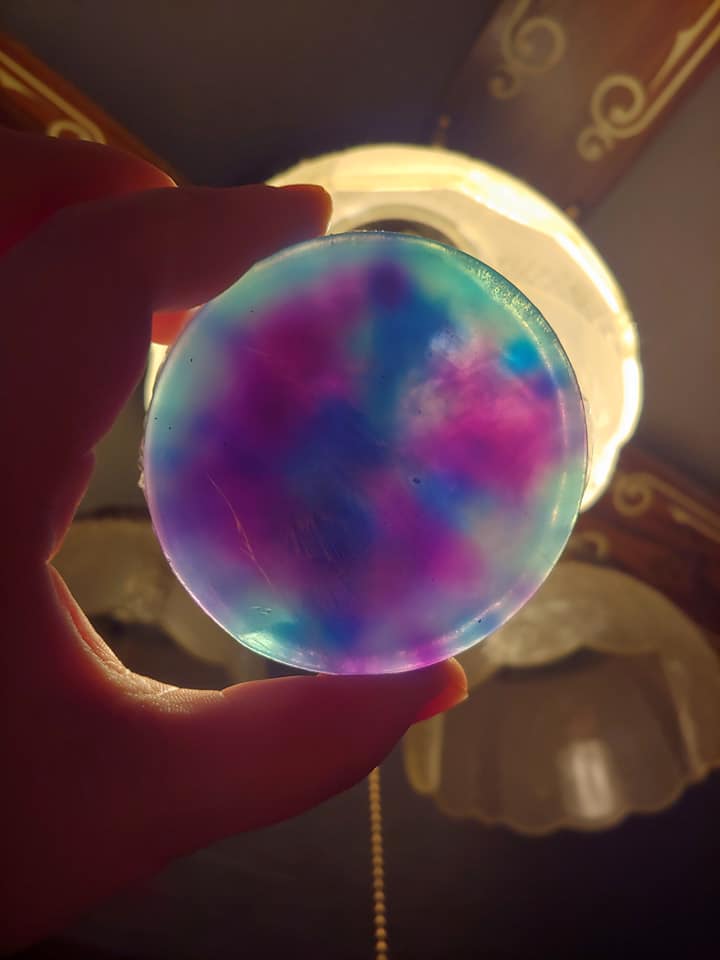 Clear glycerine soap base with 3 colors, marbled for a stained glass effect.