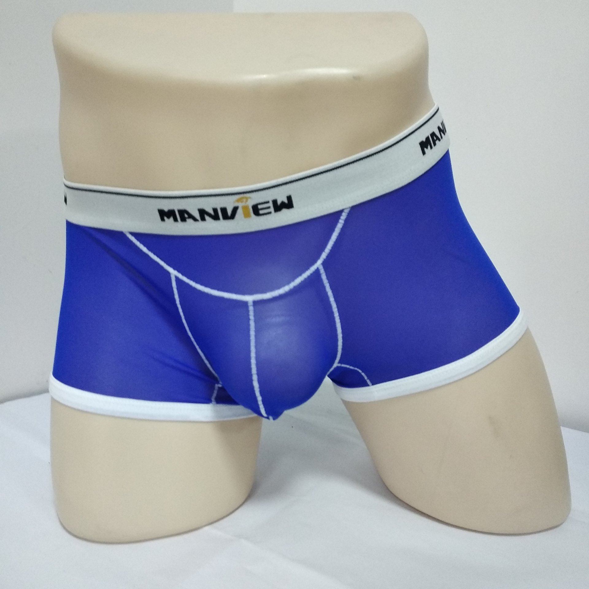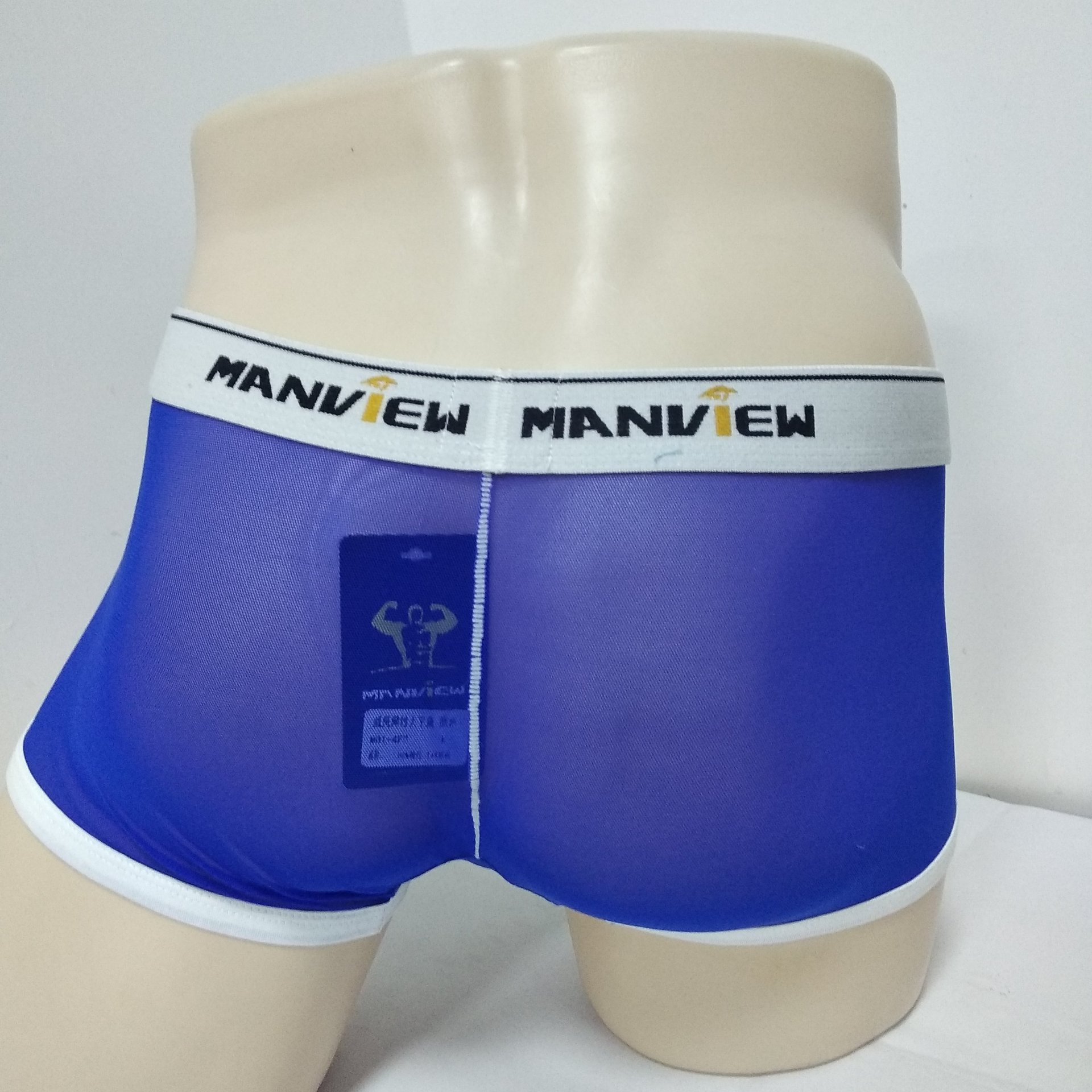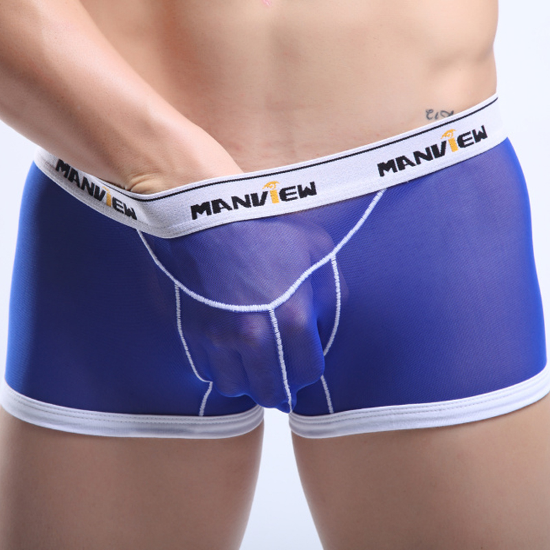 Men's underwear 3pcs sexy mesh gauze sheer boxer briefs underpants Blue #M01-4-2