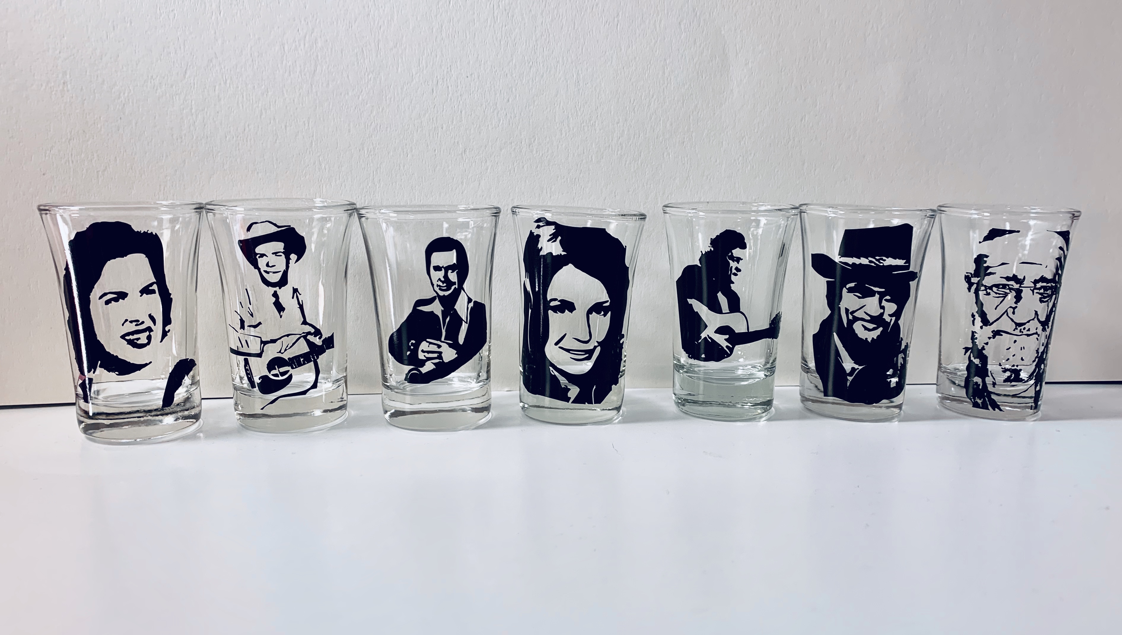 Love the Classic Country Music? Love shot glasses? To drink from or collect! I have several themed glasses. Movies, Music, TV, Sports, Quotes, Characters ETC They are 2.5" tall. Depending on stock, glasses may vary from pics. The images are vinyl and waterproof.