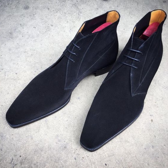 Black Chukka Lace Up | Handmade Suede Dress Boots for Men's
