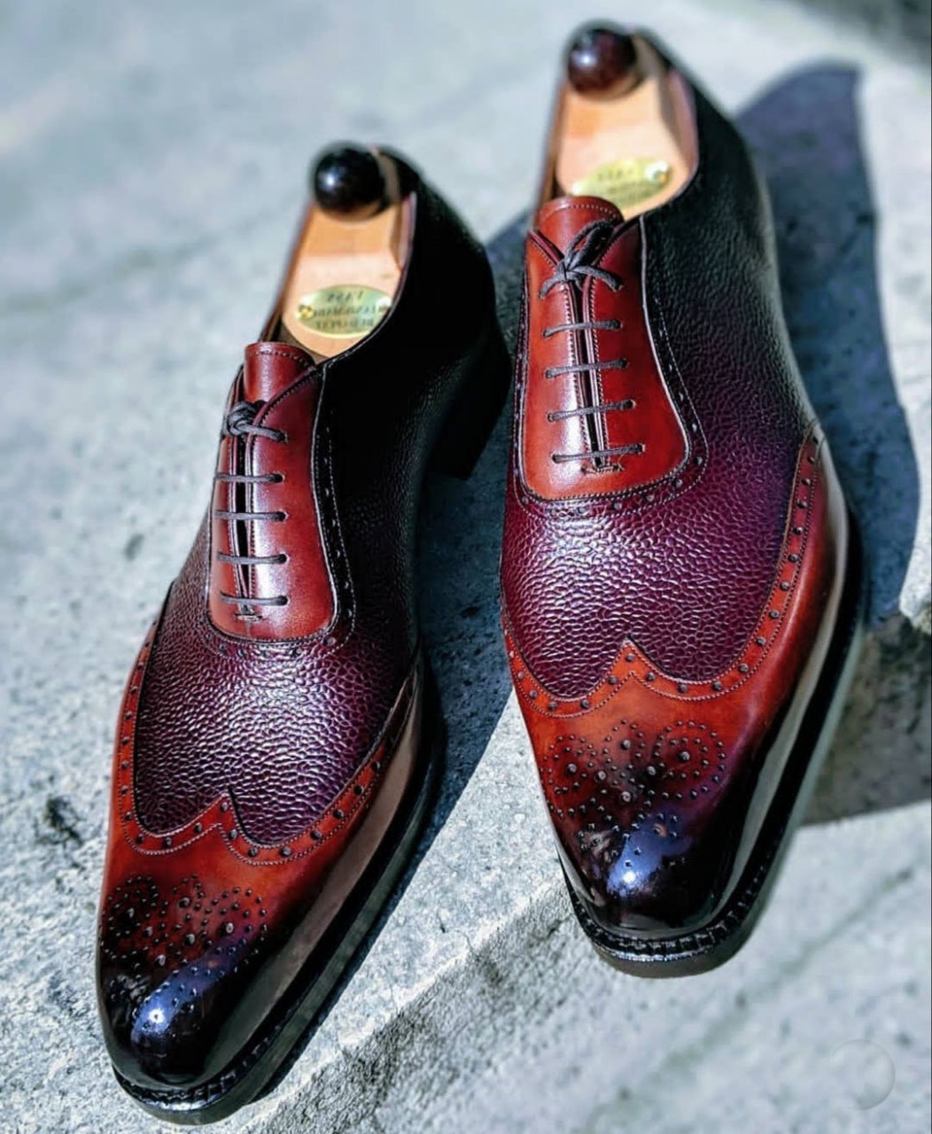 Coloured rubber out sole extends durability and longevity of these striking men’s dress shoes.