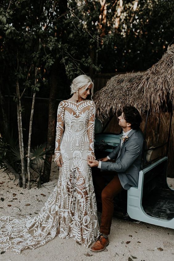 Features: Long Sleeve Boho Lace Wedding Dress