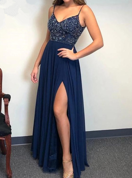 Annaprom Sexy Spaghetti Straps Long Beaded Prom Dress with Split Slit AN0007-1