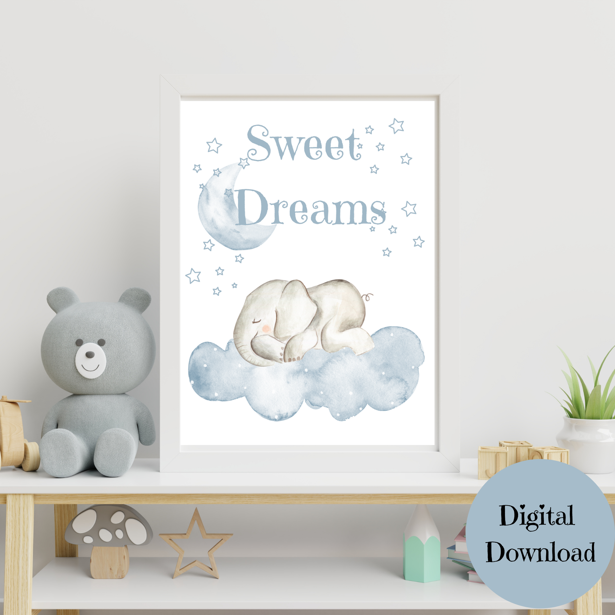 Are you looking for the perfect Elephant Nursery wall art for your baby's nursery? This Sweet Dreams Elephant print for your little one's nursery room are perfect! Decorate your little one's nursery with this Sweet Dreams Elephant Nursery Print.