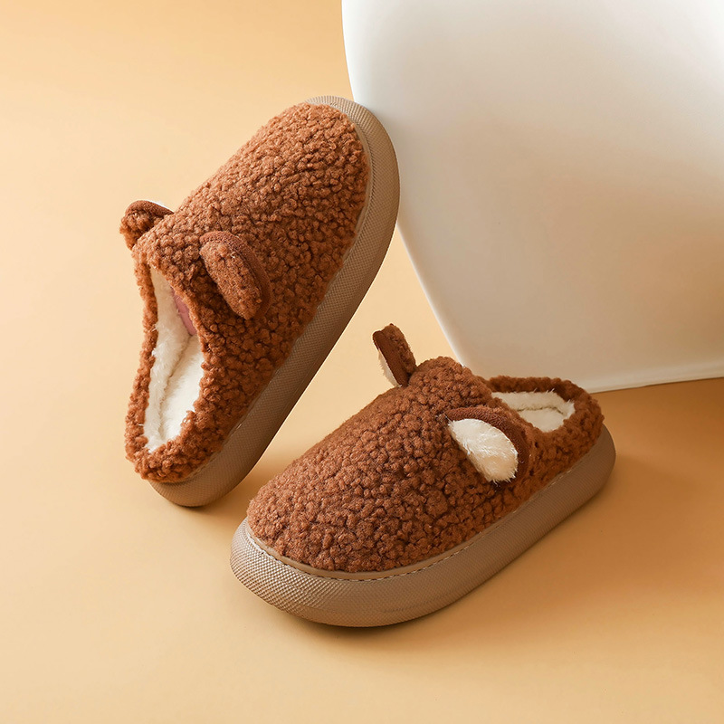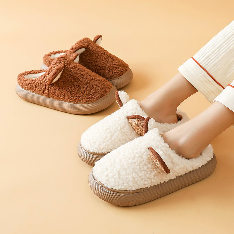 Cute Cartoon Thick-soled Cotton Slippers Household Home Indoor Warmth Couple Plush Slippers -3