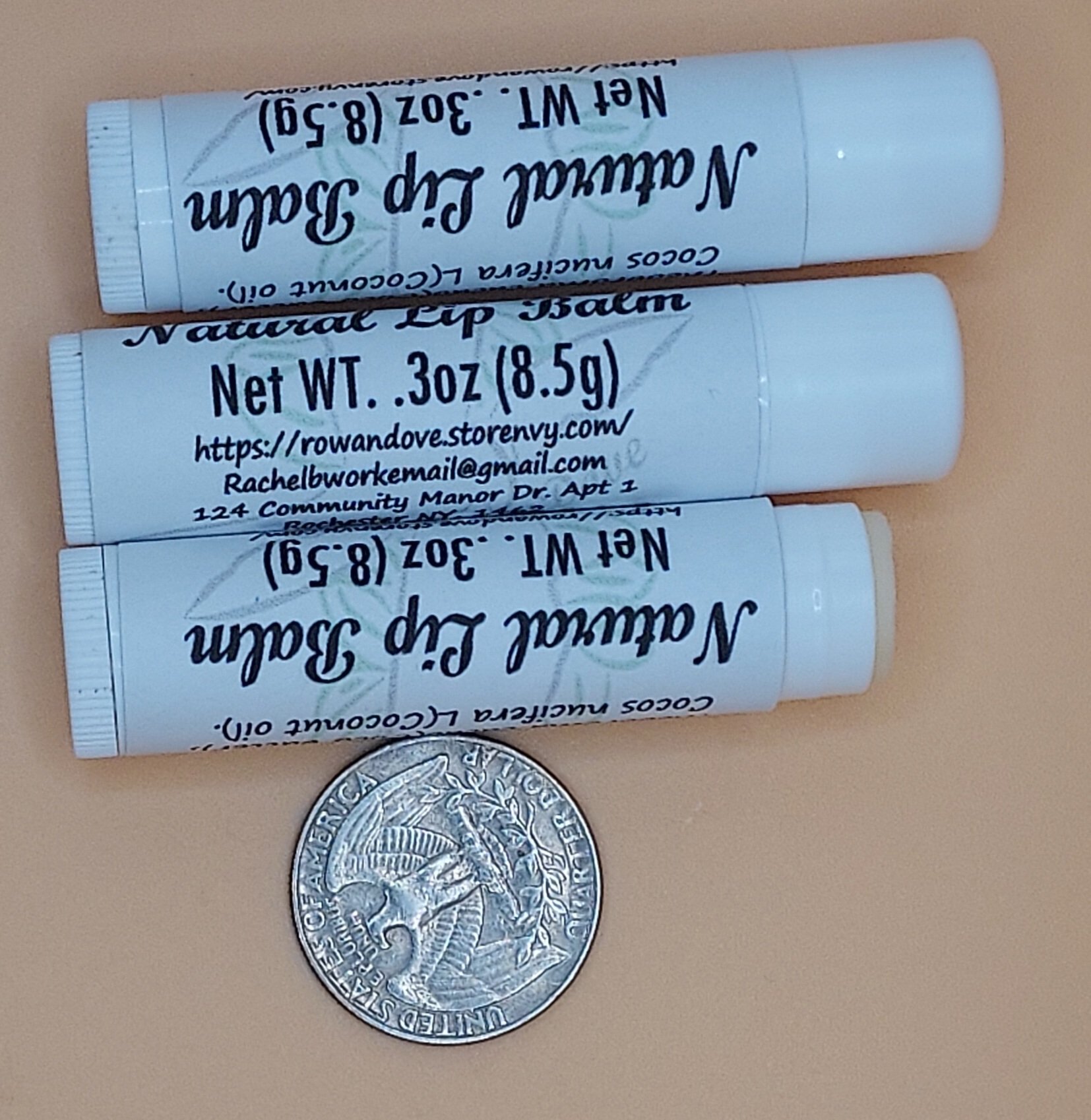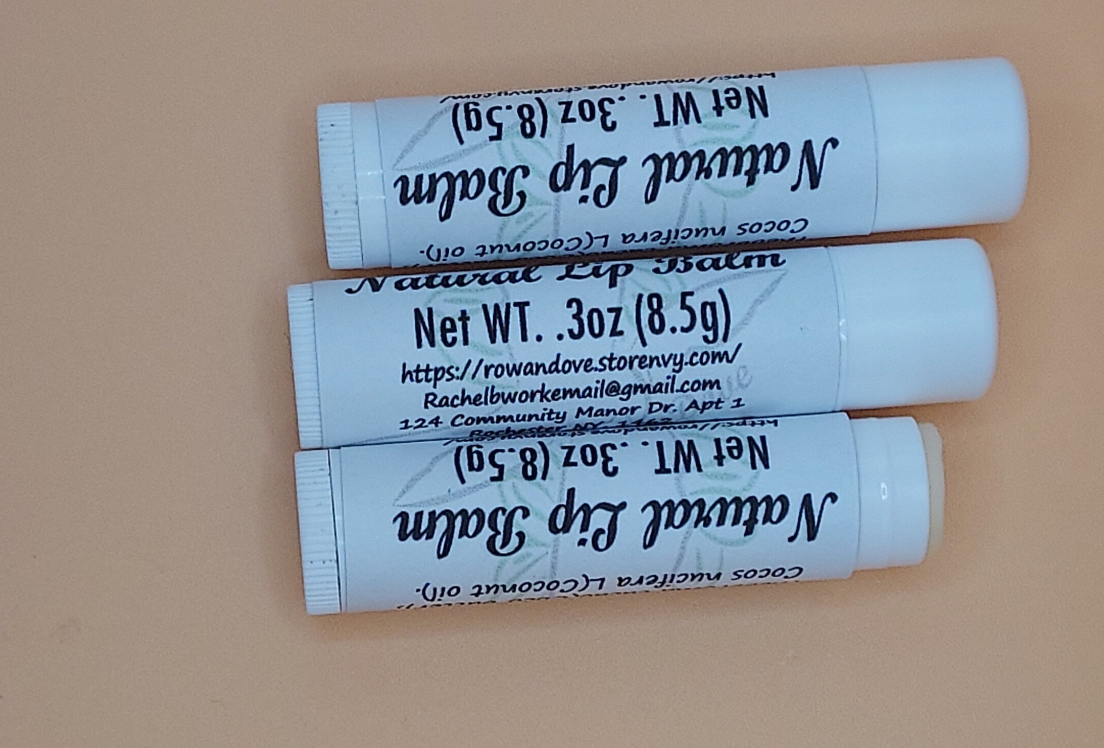 Unflavored Coco Butter and Coconut Oil Lip Balm. Net WT. .3oz (8.5g)-1