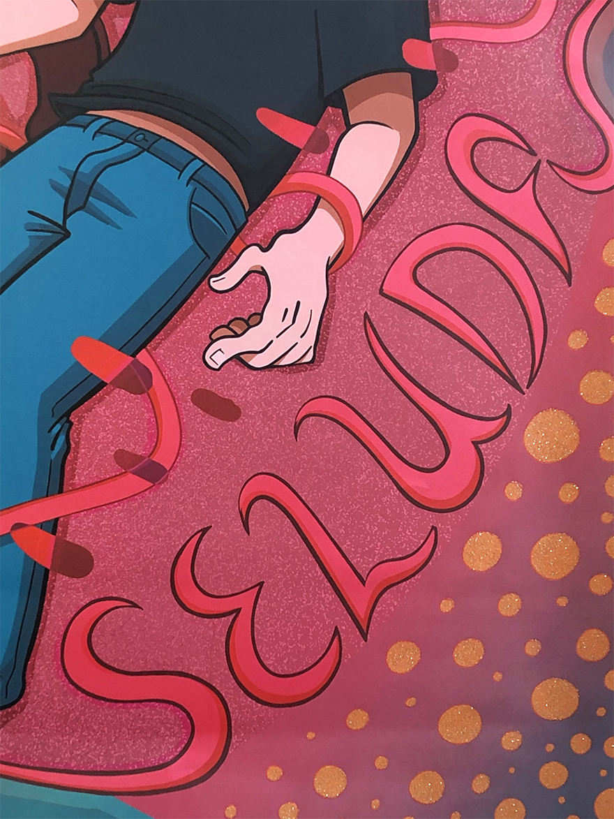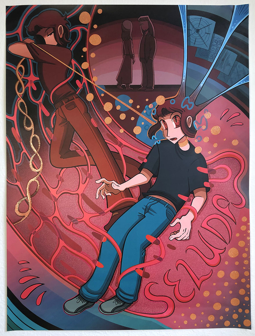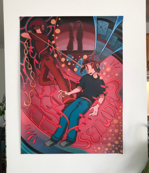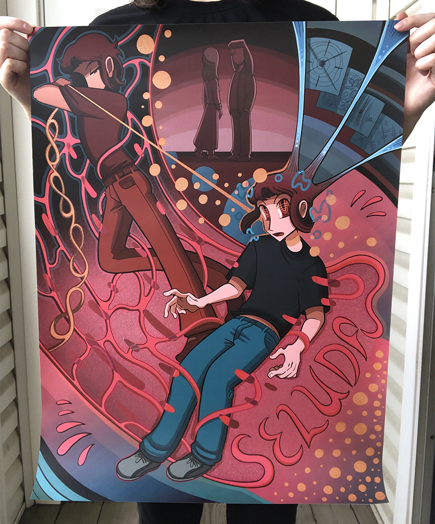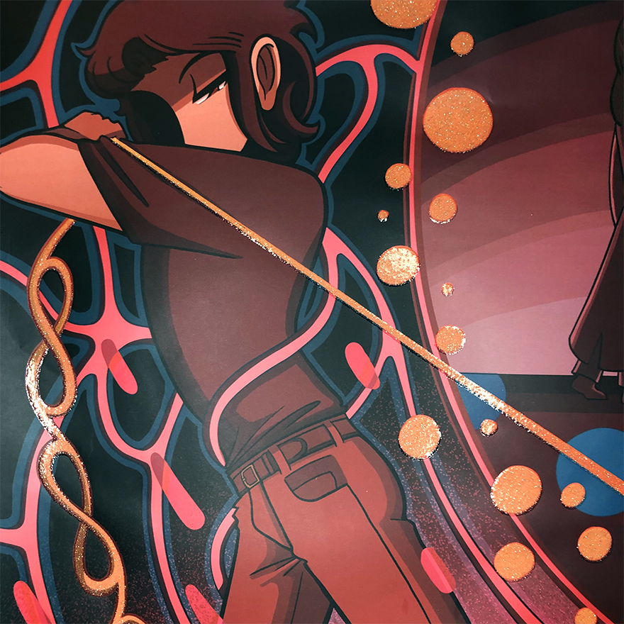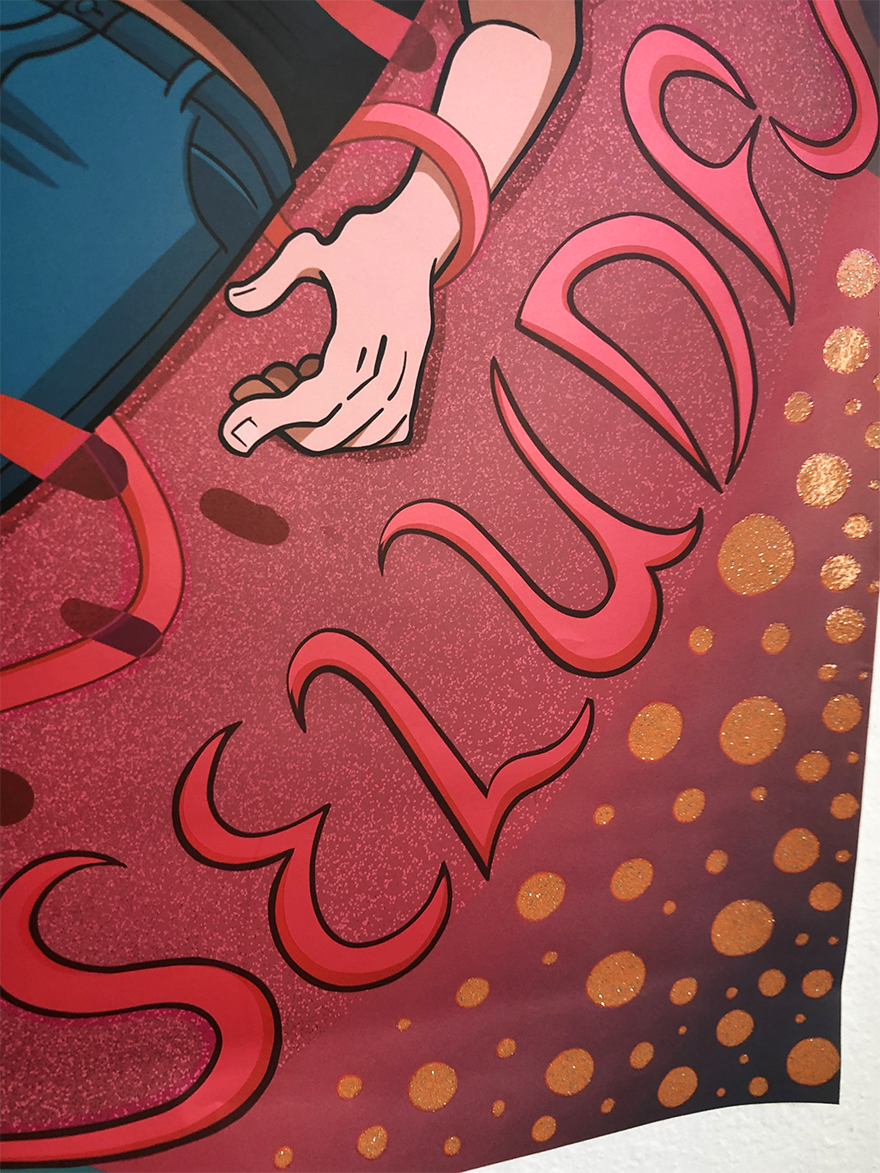 Great quality poster. The metallic and sparkling bits really stand out and look good. It included a sketch from the artist which was a really nice touch