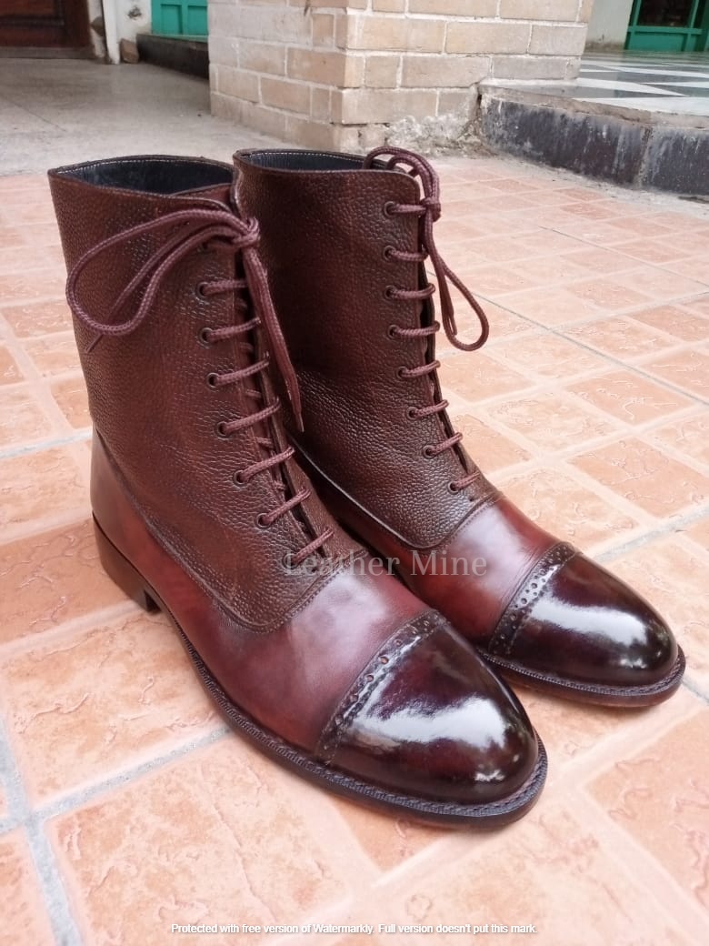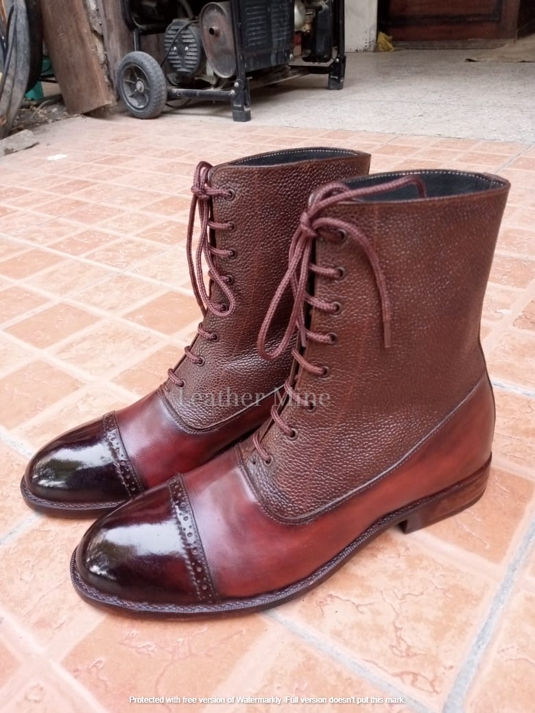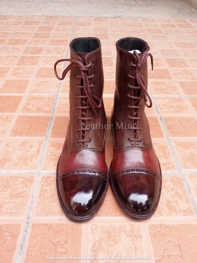 Handmade Chestnut Lace up Dress Boots, Custom Made Boots-2
