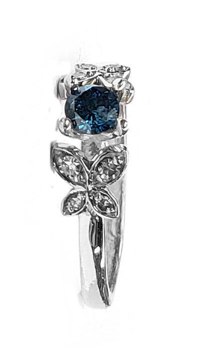 Diamond Butterfly Engagement Ring w/Blue Diamonds in 14kt. Gold