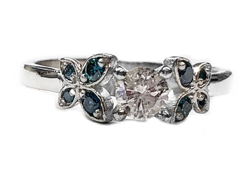 Diamond Butterfly Engagement Ring w/Blue Diamonds in 14kt. Gold-1