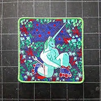 Unicorn Roller Pony Patch- my roller skating pony woman play on the unicorn tapestries; pierced by an arrow and not caring about it. Woven thread patch, unbacked. Size: 4"×4"