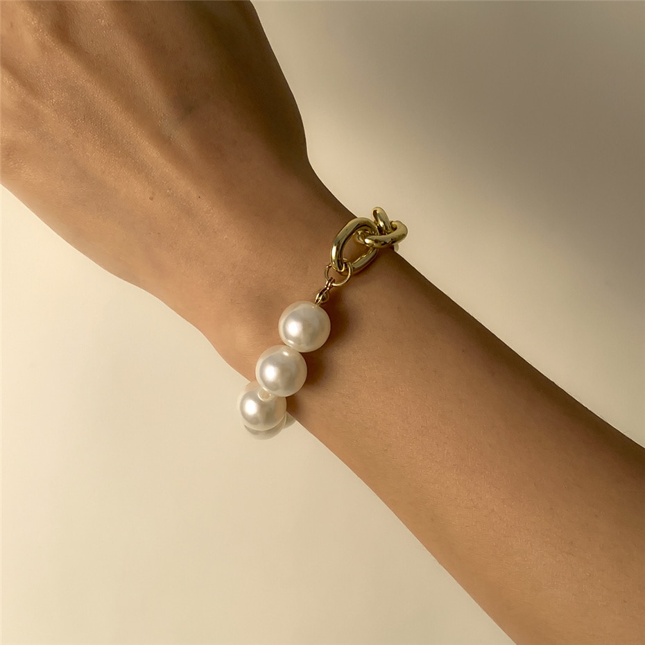 Item Name: Bracelets&Bangles Condition: 100% Brand New Material: Aluminum Chain+Imitation Pearl Color: Gold Color Size: As Picture Size Net Weight: 12g Quantity: 1 PC( don't include any other item here ) Package: PP&P