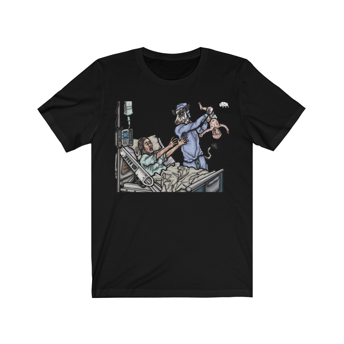"KIDNAPPED" by CHOICE BISON digitally printed on a t-shirt will be sure to turn heads, catch eyes and open minds! The viral artwork carries a message to promote animal, human, and environmental well being that you will be proud to represent.