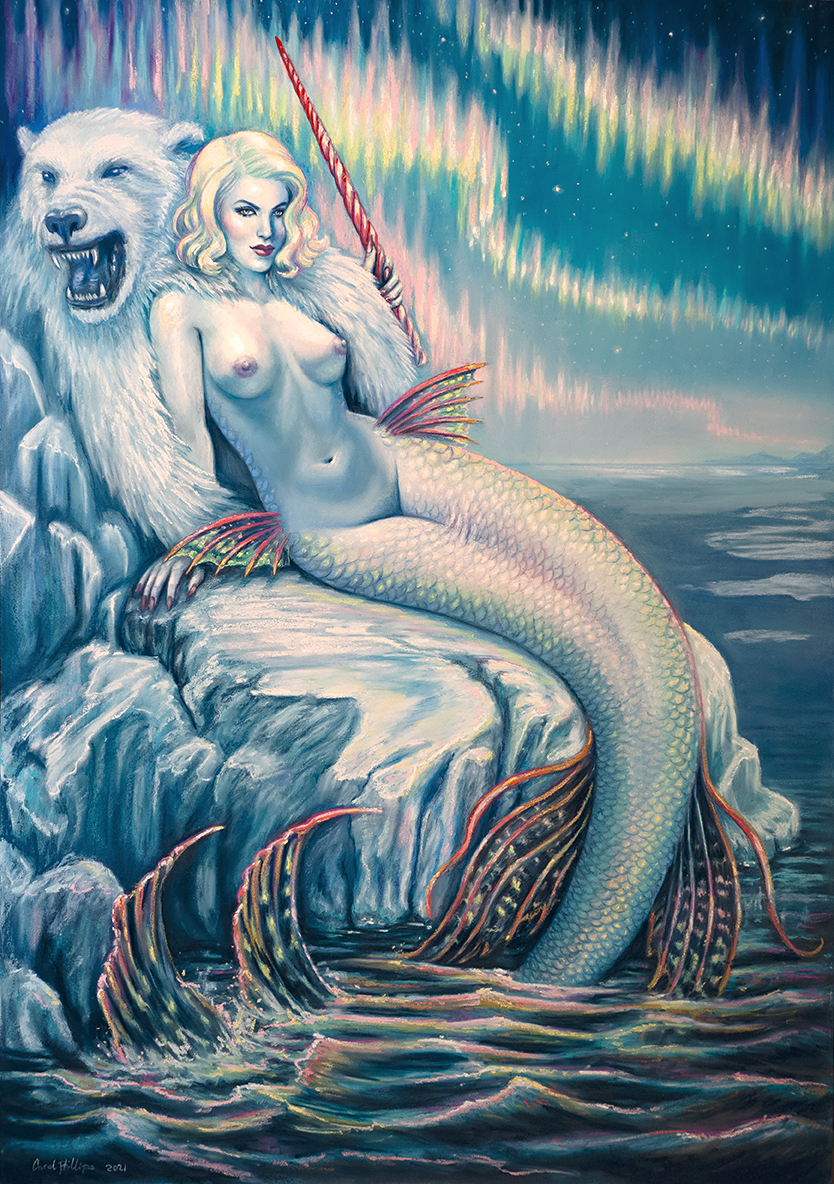 Color of sample image may vary from monitor to monitor. This is a beautiful Open Edition Giclee reproduction of carol's newest mermaid in the vintage mermaids series! "ZIrconia 10th in the Vintage Mermaids Series" Zirconia is the newest mermaid in my Vintage Mermaids Series. She is my 10th mermaid in the series and the first addition to this series in about 10 yrs. I started this mermaid series as a very young artist, and over the years it has evolved as i have evolved as an artist. Zirconia is a fantastical mermaid who may look harmless, but speaks about our worlds global warming issues. She reflects the glamor, self indulgence and self interest of the western world. As she sits on her iceberg as it melts into the sea, holding a freshly harvested narwhal horn, and drapes herself with a life like polar bear fur, beside an oil slicked sea. About this fine art print : --Open Edition Print --The print measures approx. 15.5 x 22 --Paper Size is 16 x 23 --Printed on acid free matte paper for longevity. --Printed with Pigmented inks for increased color longevity This would make a great addition to your fantasy art collection or make a great gift! This would also look great framed. Ua Mau ke Ea o ka ʻĀina i ka Pono or "The life of the land is perpetuated in righteousness".