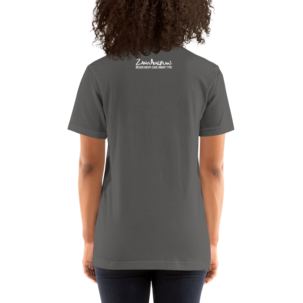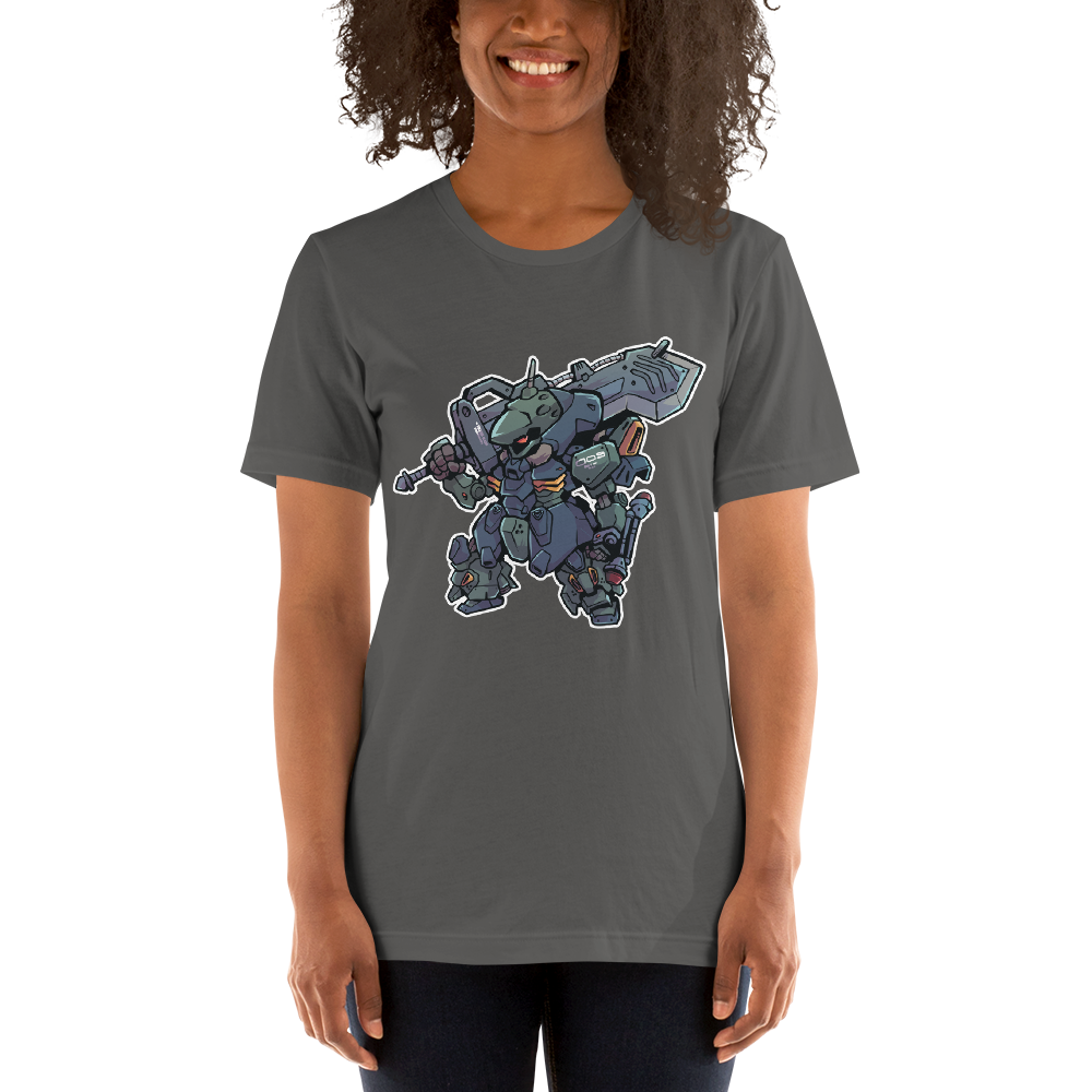 It's my customized Messer drawn in adorable chibi art style by lynx53designs! ZakuAurelius logo and mobile suit title printed on back.