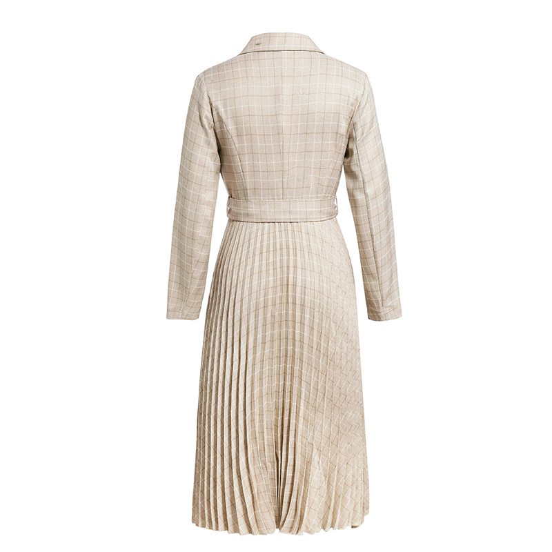 Vintage Plaid pleated Trench dress Office lady checkered blazer Dress Autumn Trench Coat Dress  Belted Trench Coat #1026-4