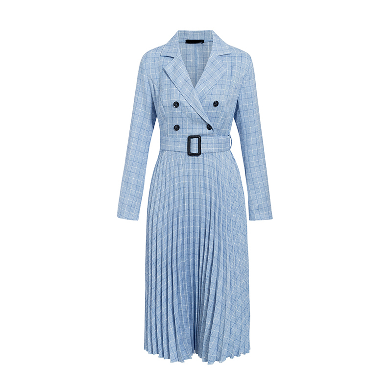 Vintage Plaid pleated Trench dress Office lady checkered blazer Dress Autumn Trench Coat Dress  Belted Trench Coat #1026-3