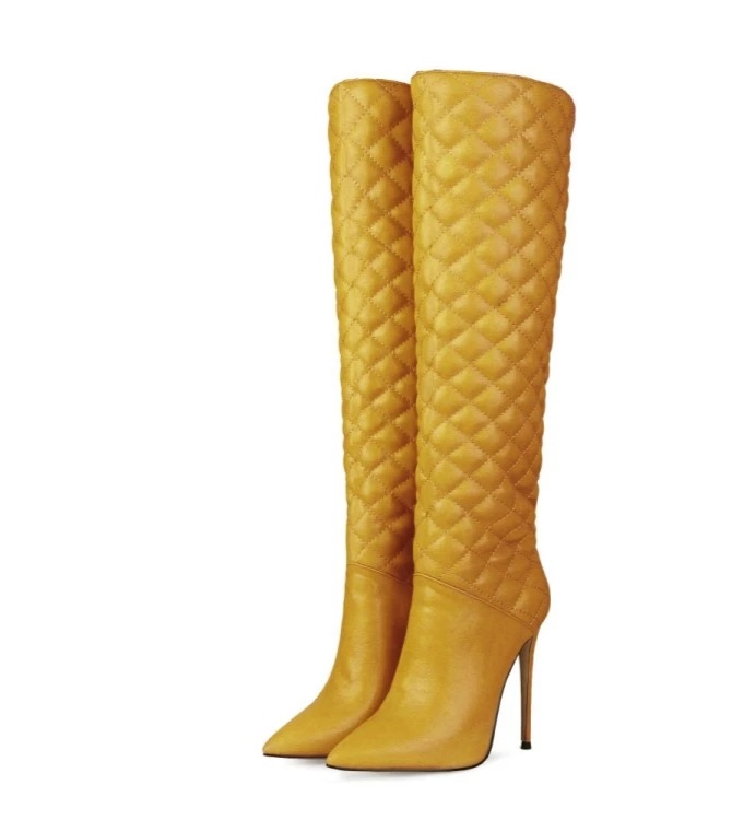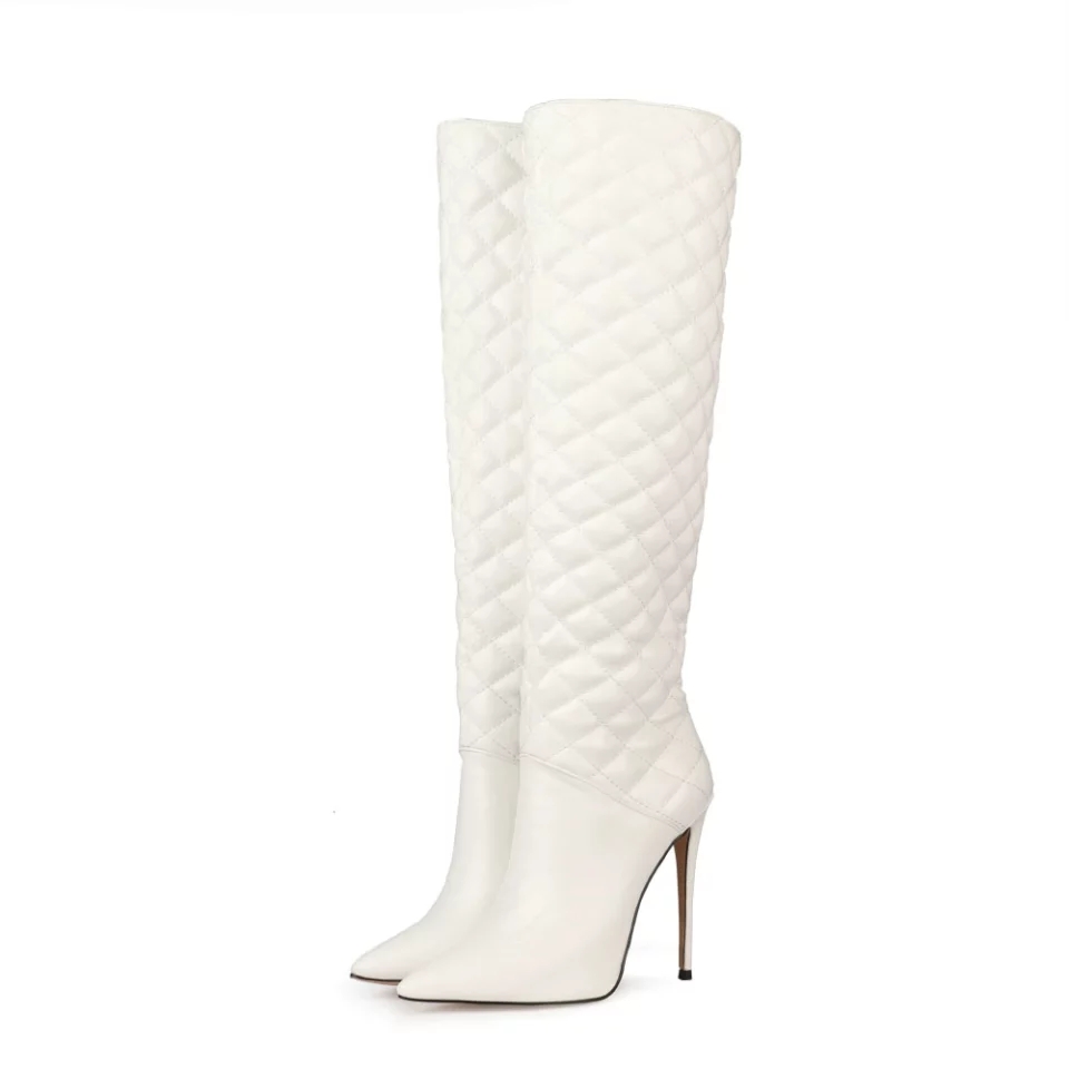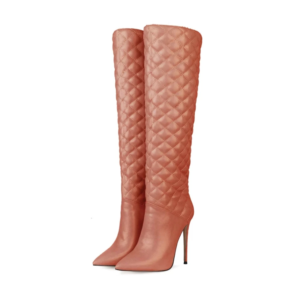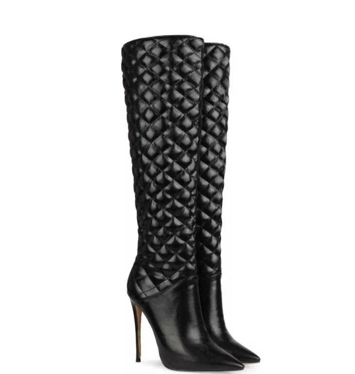 New Elegant Pointed Toe Knee High Square Print 12cm Heels