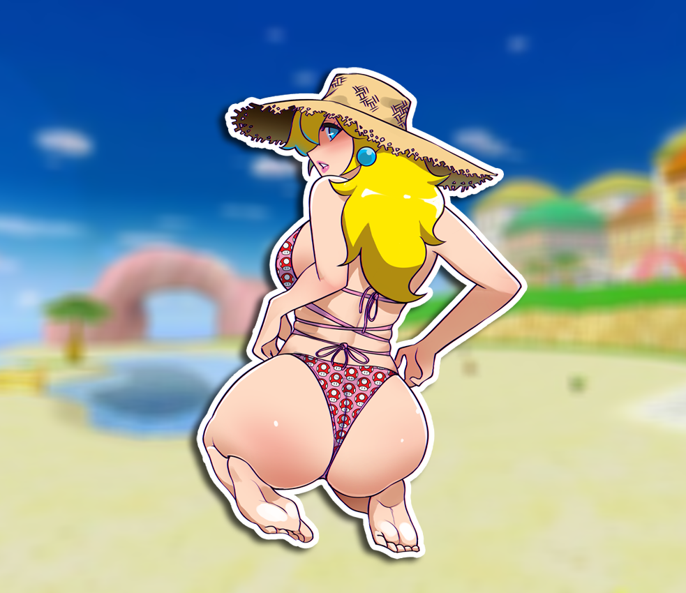 Princess Peach Bikini Sticker sticker is printed on beautiful, vibrant colors on vinyl sticker paper. This sticker is perfect for water-bottles, hydroflasks, laptops, tablets, iPads, tumblers, journals and notebooks.