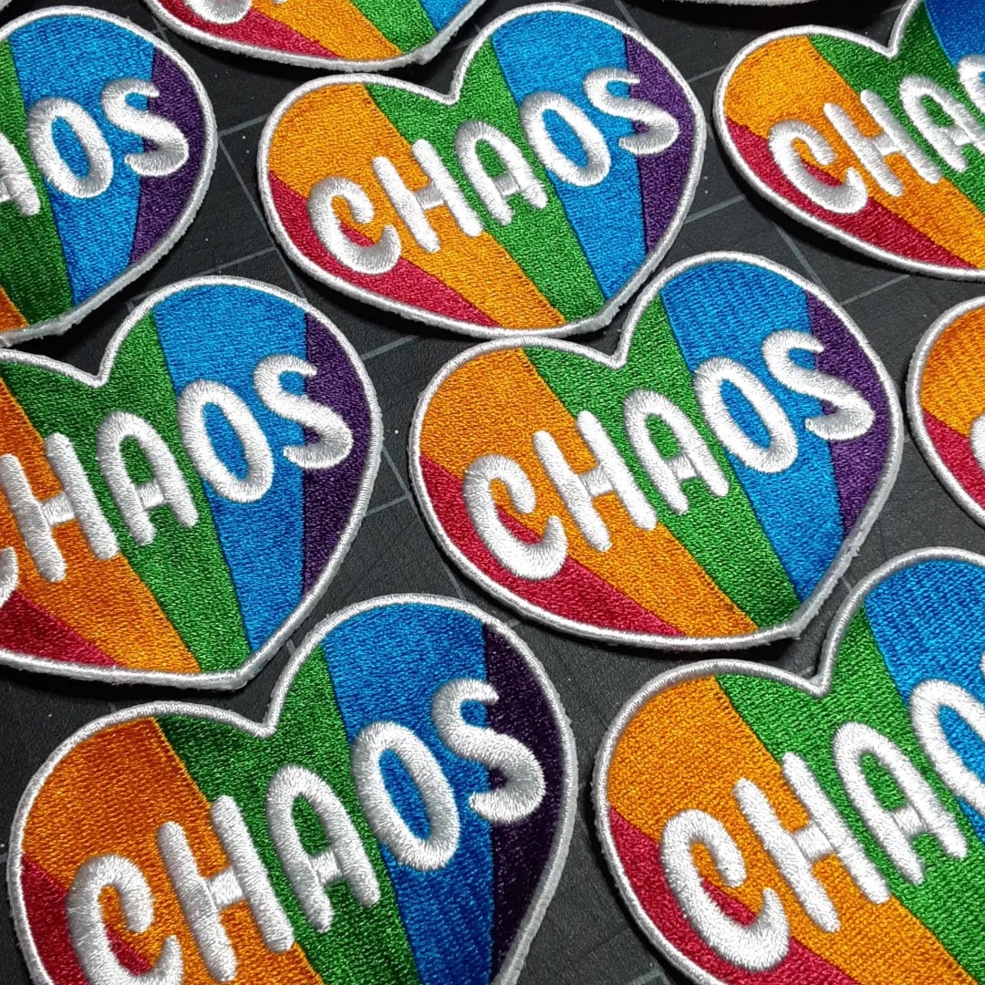 3"w x 2.5" H Unbacked, Embroidered Patch Embrace Chaos!