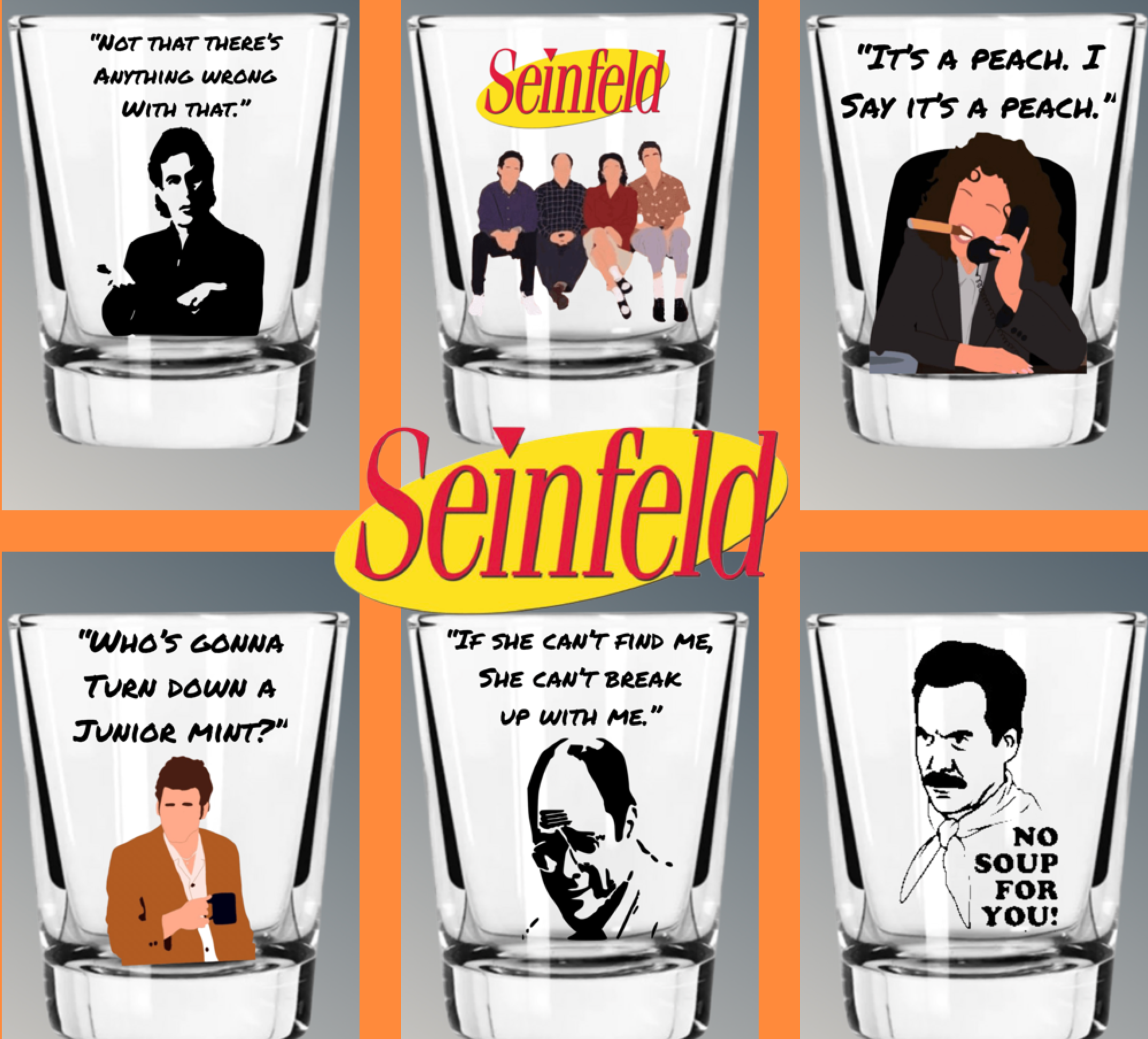 TV Seinfeld Shot Glasses w/ matching Gift Boxes-5