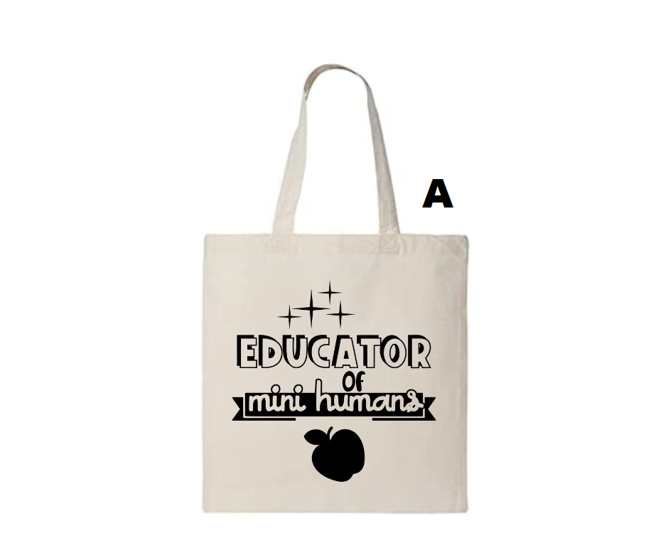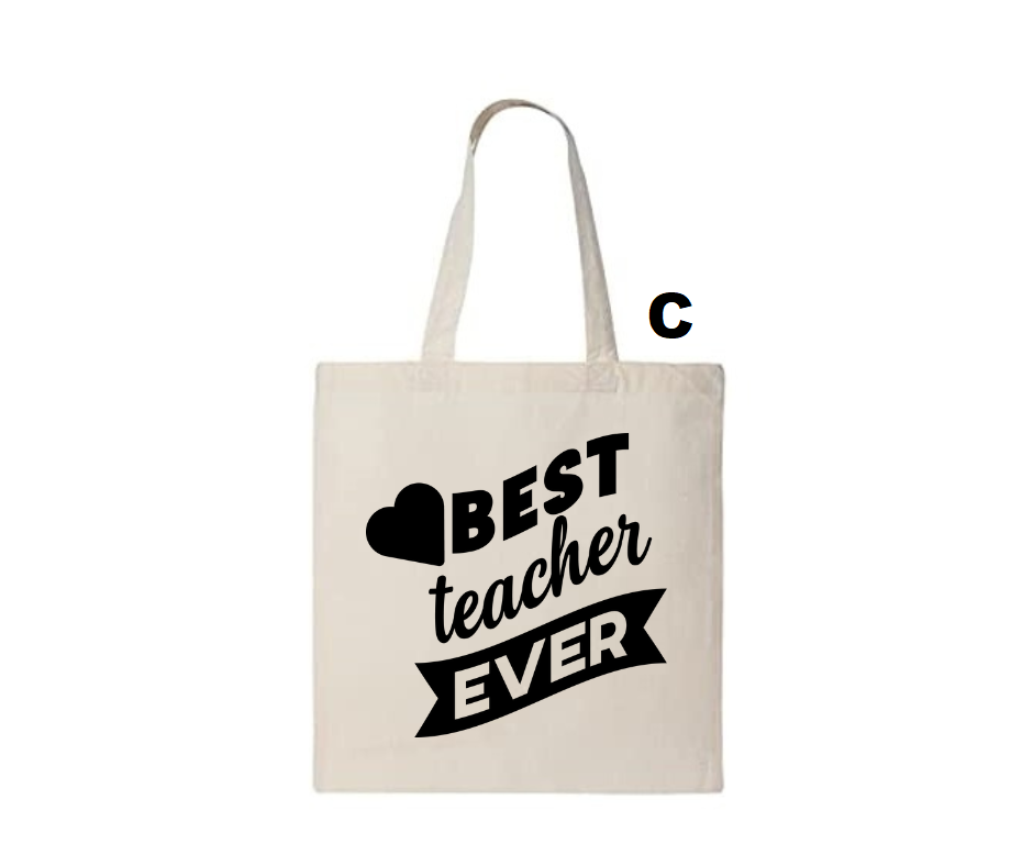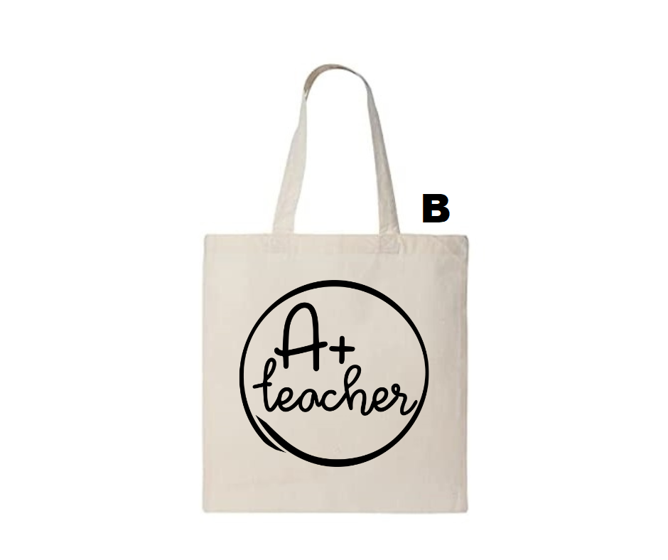 This durable tote is customized with a black vinyl design. Great as a gift to your child's teacher! Educators are constantly lugging their supplies around and are sure to find this bag very useful.