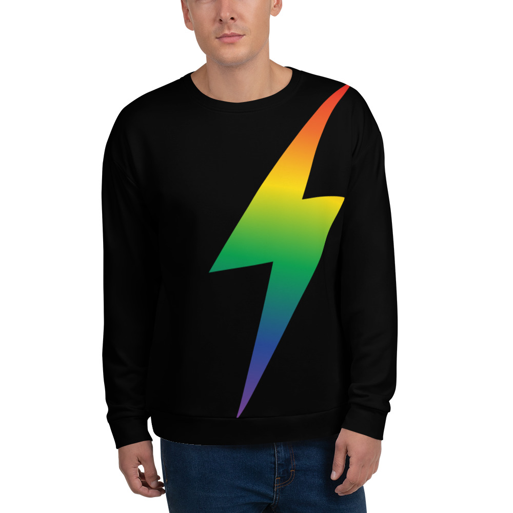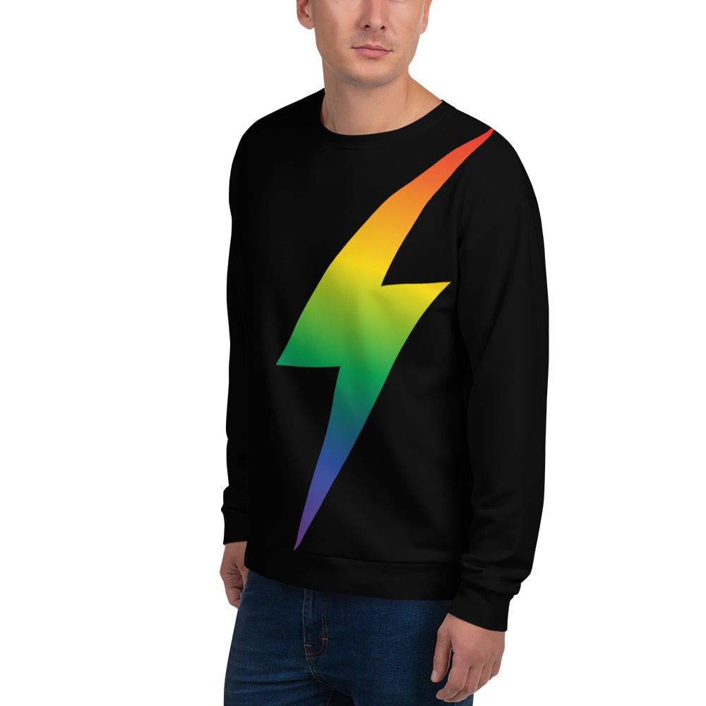 65 MCMLXV Unisex Black Rainbow Thunderbolt Print Sweatshirt-5