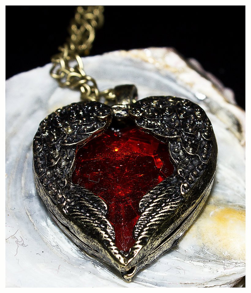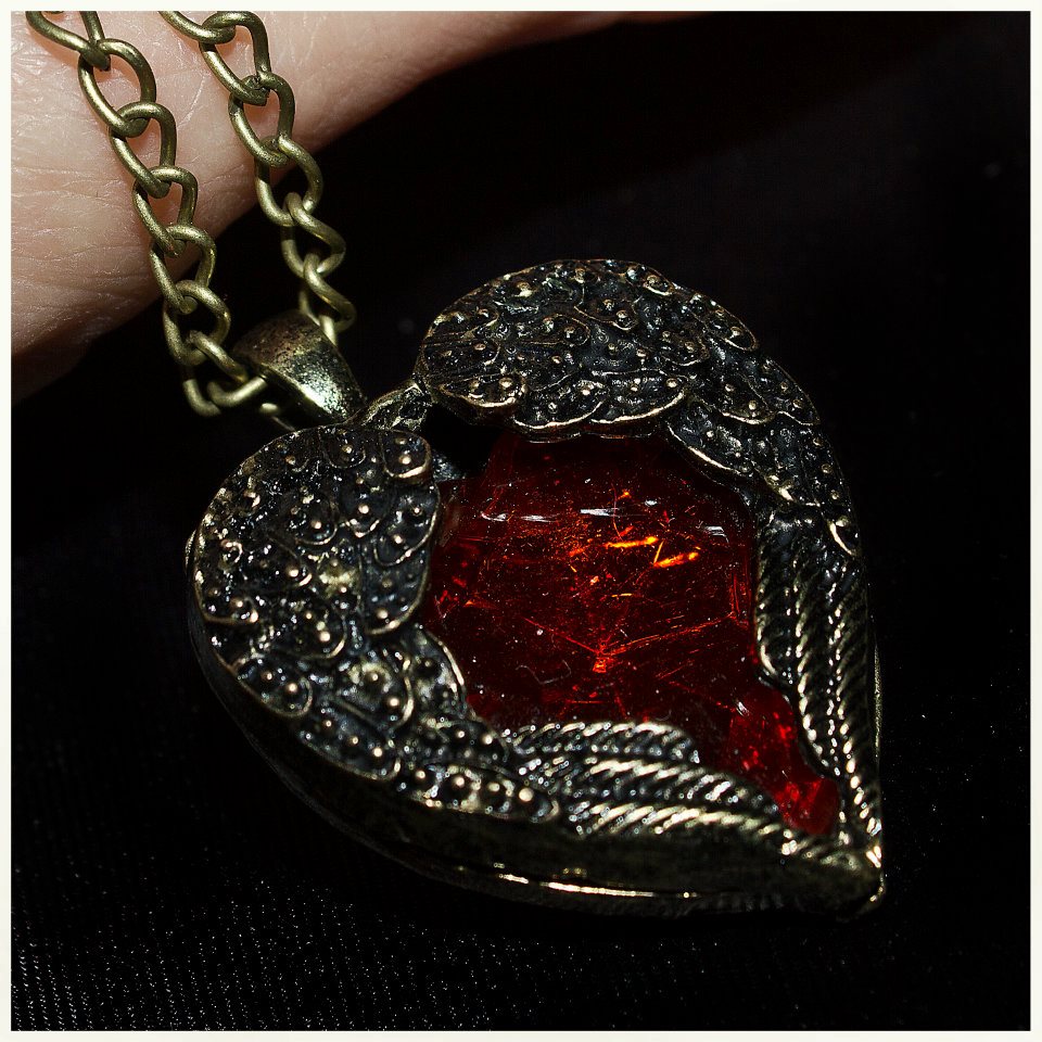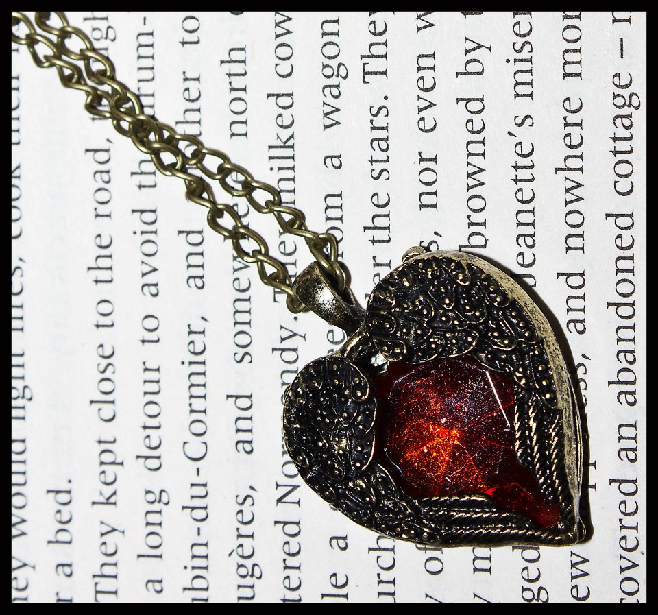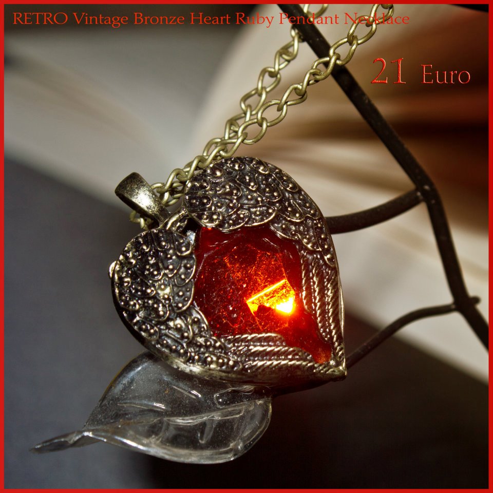 Vintage Bronze Heart Ruby Pendant Necklace-2