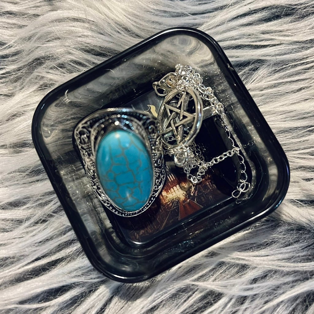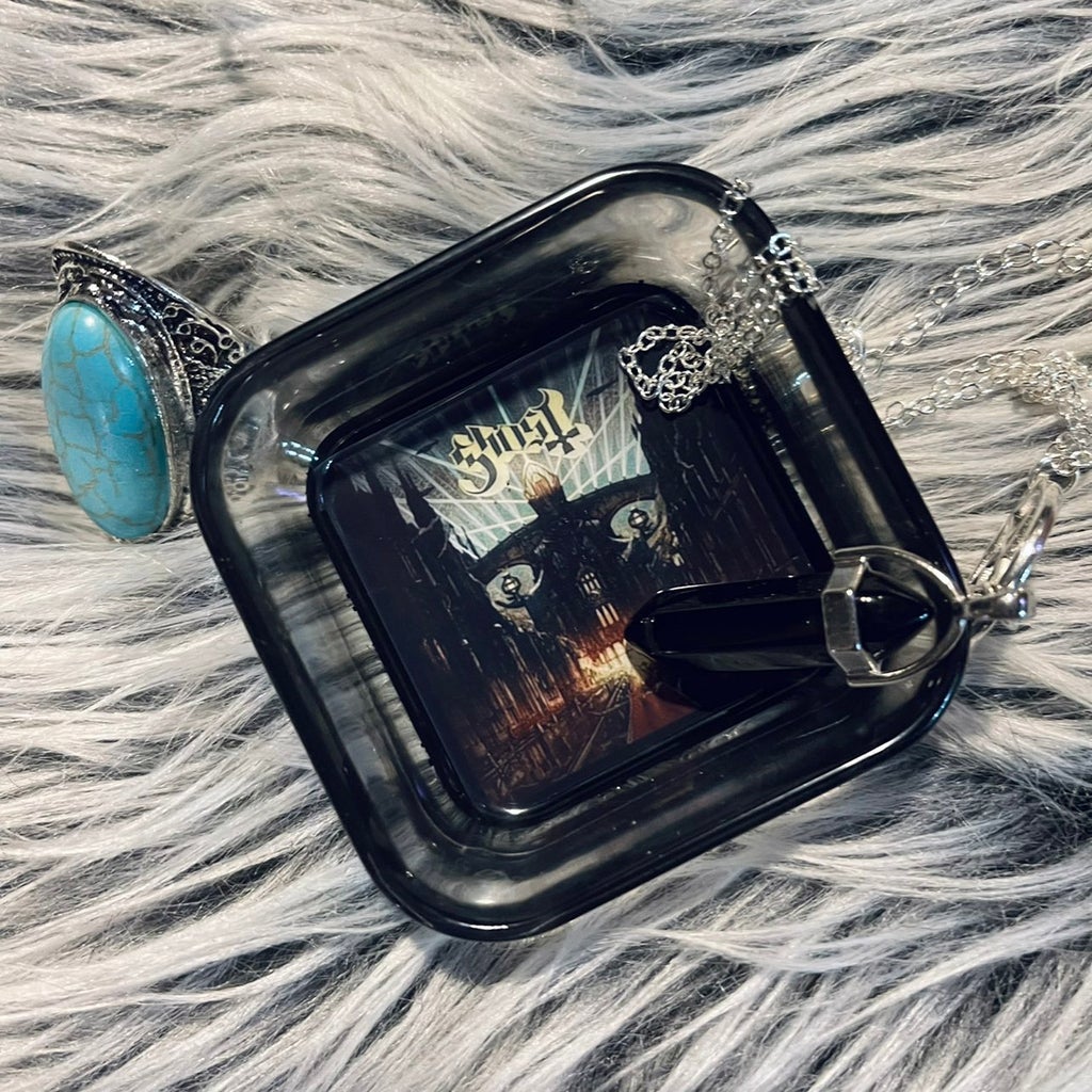 The perfect little tray that will collect all your little valuables! Makes a great gift! Crystal clear with a black base. Measures 3” from corner to corner. Listing is for one mini tray. Jewelry not included. These items can be found in my other listings!