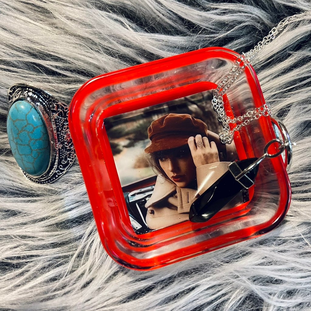 The perfect little tray that will collect all your little valuables! Makes a great gift! Crystal clear with a red base. Measures 3” from corner to corner. Listing is for one mini tray. Jewelry not included. These items can be found in my other listings!