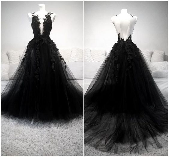 Spaghetti Straps Black Lace Wedding Dresses A Line Gothic Wedding Gowns Side Split Sexy Bridal Dress with Open Back