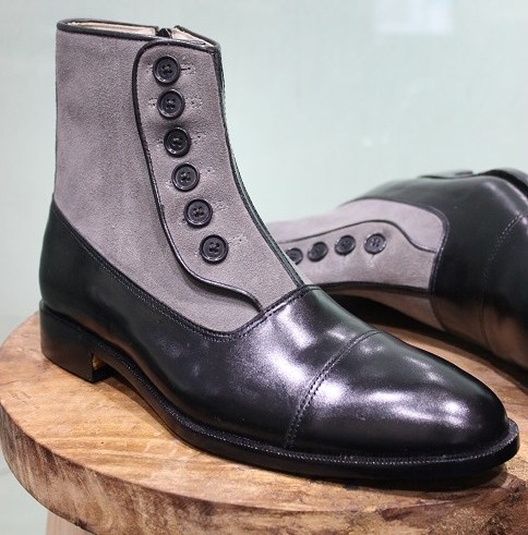 Men's Handmade Button Boot, Men Casual Moccasin Button and Zipper formal Boot-3