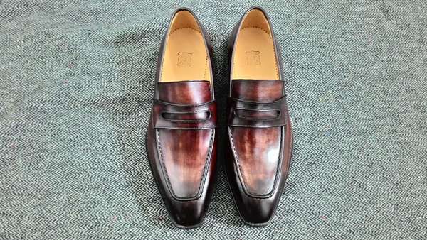 Handmade Men's Genuine Brown Patina Leather Penny Loafers Handcrafted Slip On Formal Leather Luxury Loafers Men's Leather Shoes, Loafers-1