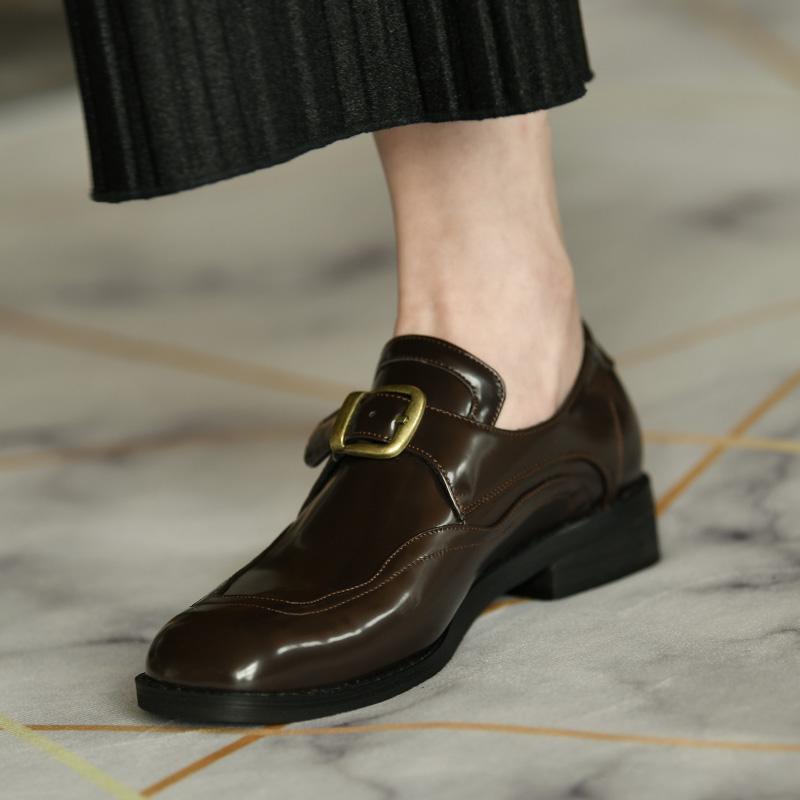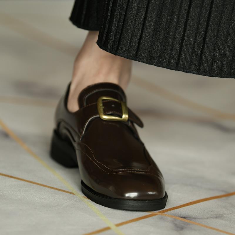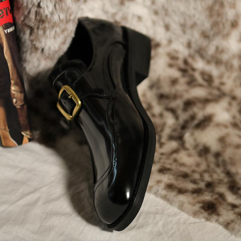Retro Square Toe Belt Buckle All-match Square Heel Loafers-1